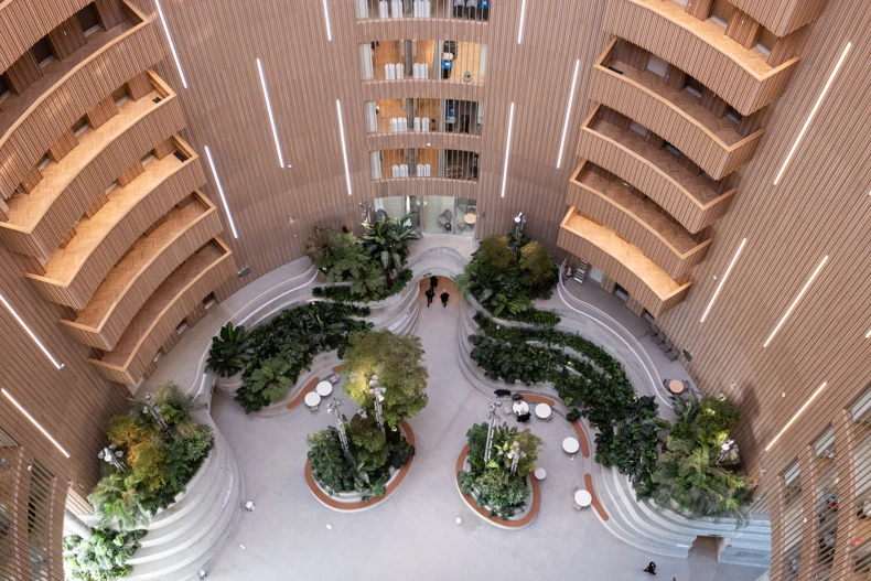 Designed in collaboration with COBE and Third Nature, the Tip of Nordø rises 60 metres above Copenhagen’s harbour as a new landmark celebrating the area’s industrial heritage. With its angled façades optimising daylight and reducing energy consumption, and a green public courtyard bringing light, air, and nature into the heart of the building, the design reflects our ambition to create workplaces that are open, inclusive, and closely connected to the city.