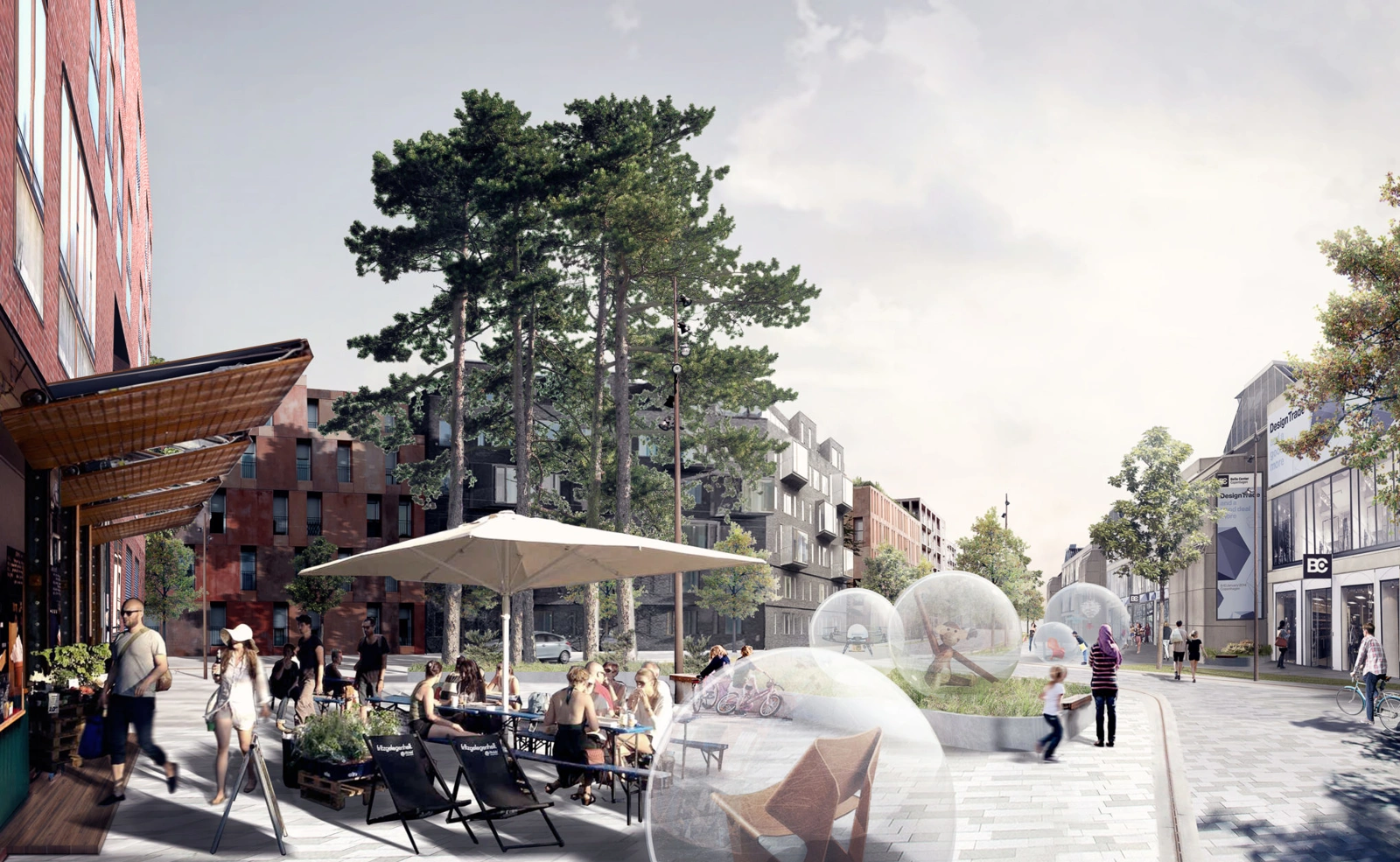 The district is constructed in blocks made up of small built structures with a height of between three and six floors, featuring a variety of materials and façades. Here and there, the blocks will be topped by bright, multi-storey roof apartments. These ‘cubic towers’ will appear like compressions of a corner or a street.