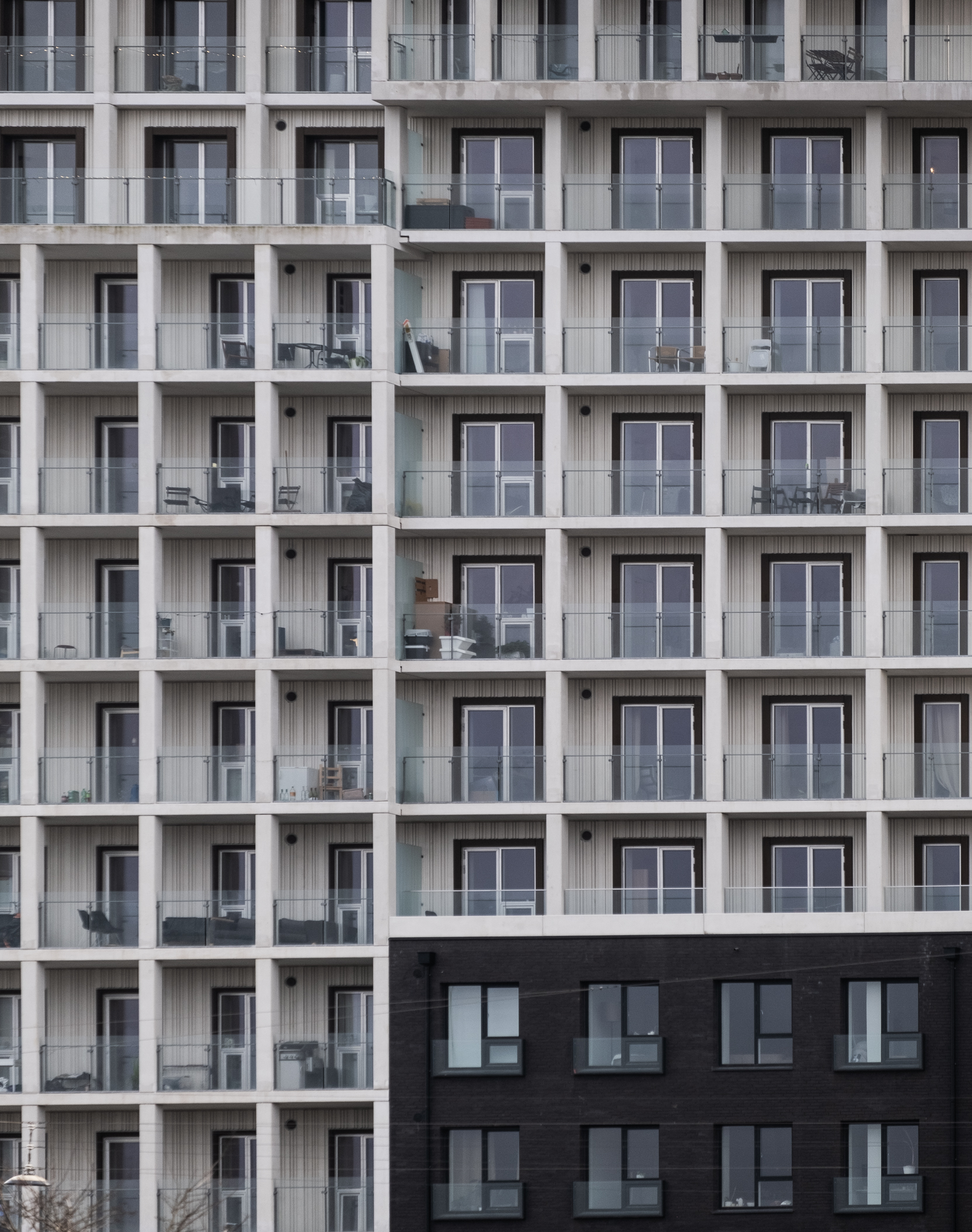 The tower is designed with 360 degree balconies in different depths, which vary from French balconies to living balconies. It provides the opportunity for a rich outdoor life, where you can go outside from all rooms and enjoy the uninterrupted view over Ørestad and over Amager Fælled to Copenhagen's Skyline.