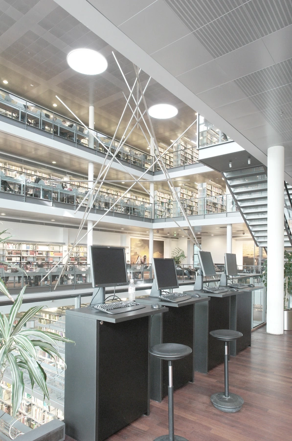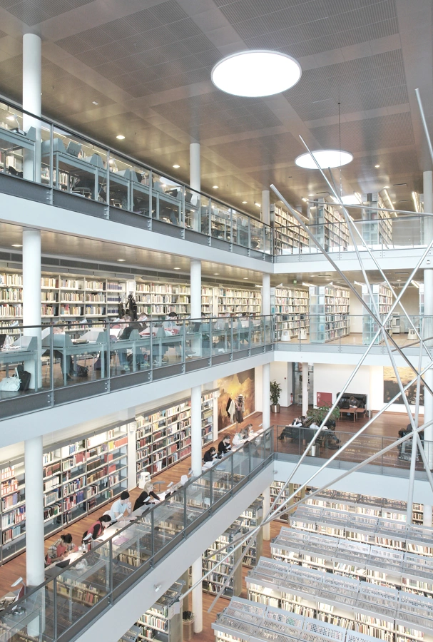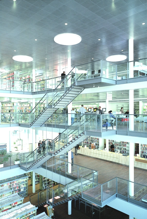 The building’s inner arcade forms a backbone with a series of auditoriums, a library, CBS’s joint administration, and common facilities. A big part of CBS on Solbjerg Square contains private programs, where the auditoriums are the most significant ones. In spite of that, the building presents itself as open and inviting – facing the busy pedestrian street at Frederiksberg Library and Frederiksberg Metro Station.