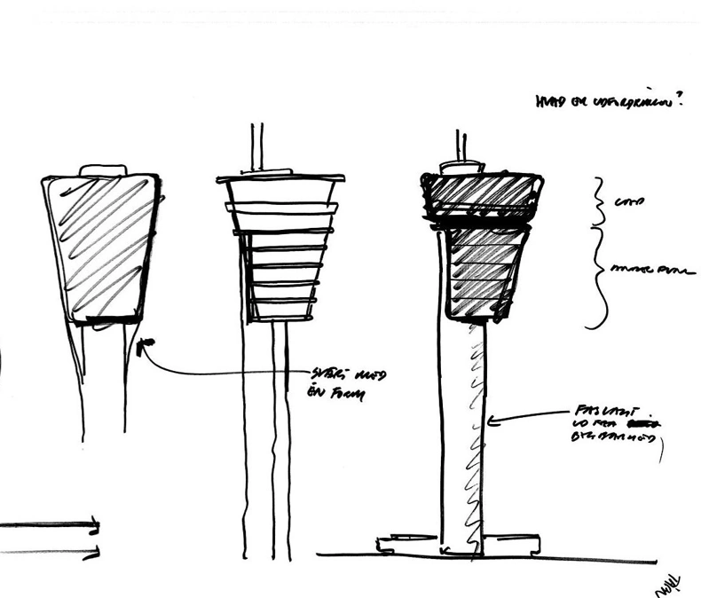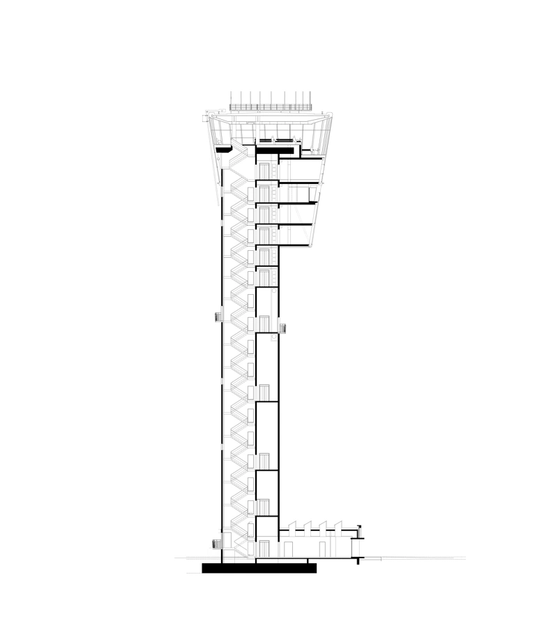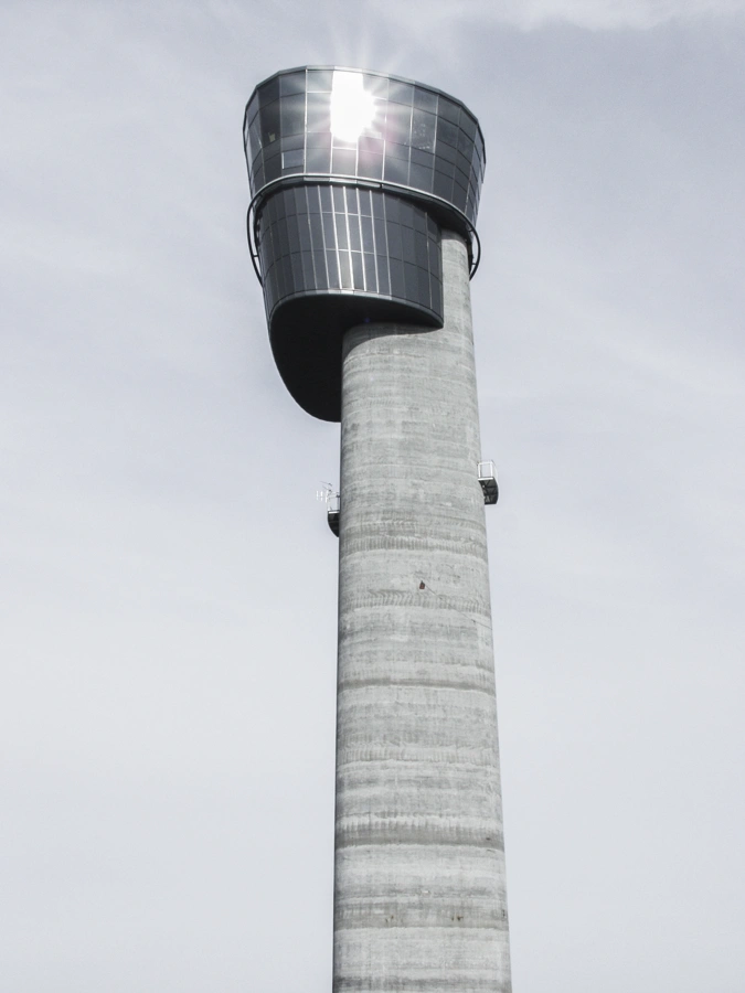 The Control Tower was designed on the basis of some very clear functional criteria. On the one hand, the Control Tower is a closed, secured workplace. On the other hand, it is an outward-looking icon that makes Copenhagen Airport visible to the outside world. The tower can be seen from miles away: a distinguished workplace for the staff, who spend both day and night in it.
