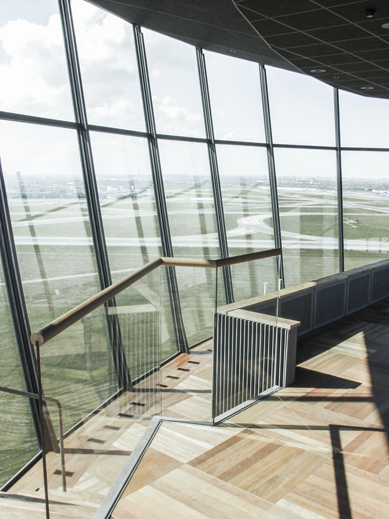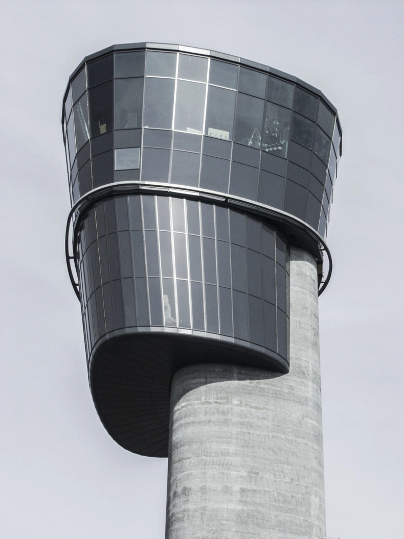 The control tower at Copenhagen Airport was designed to convey a significant expression of high quality. The project comprises three main elements: the flat base building, the 21-storey tower and, at the very top, CAB – ‘the huge eye’, where flight control takes place.