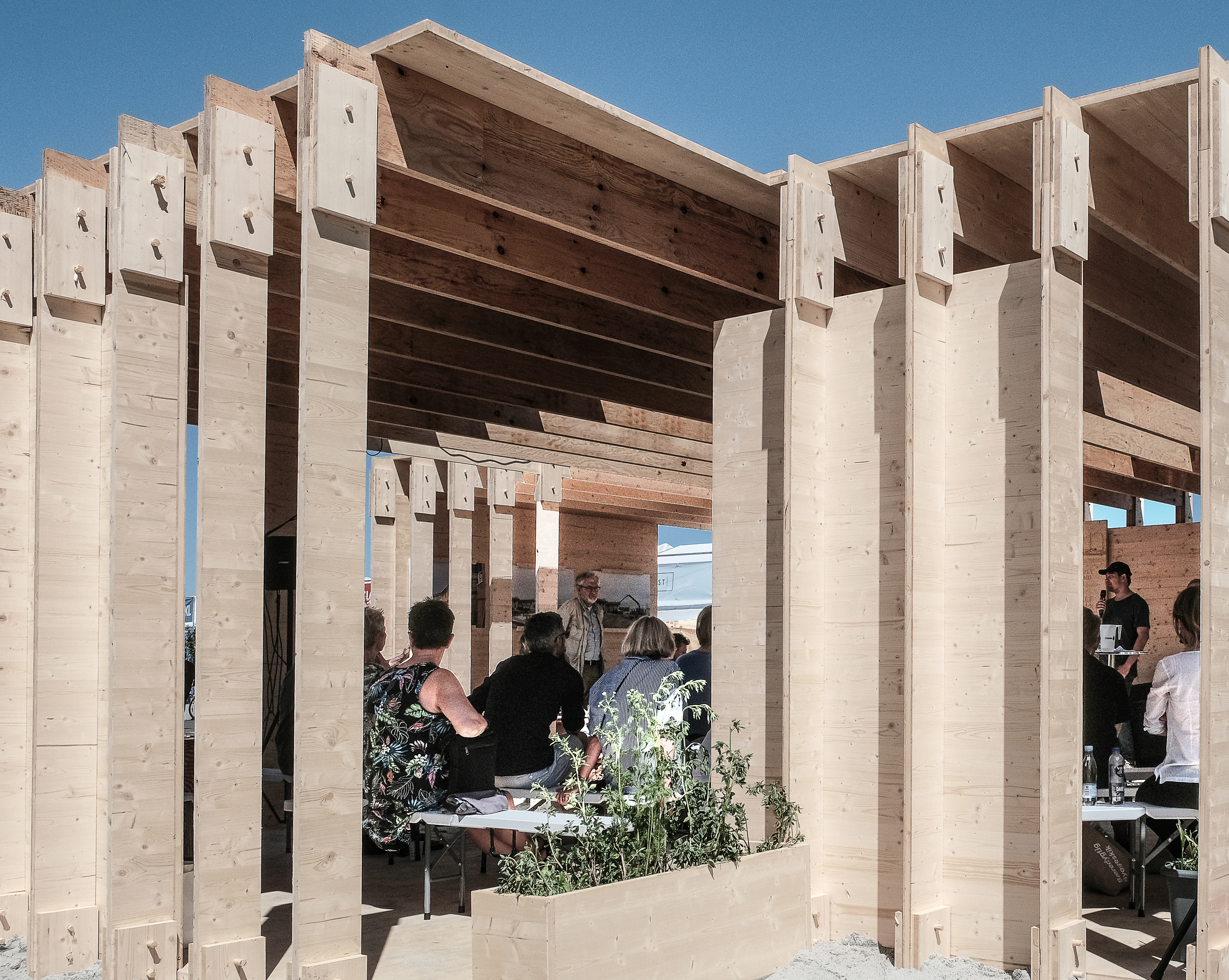 Leftovers from a construction site became the wooden pavilion 'EfterLaden' at Folkemødet in 2019. The pavilion hosted events about the future of sustainable and climate-friendly solutions in construction - an industry that is one of the world's largest greenhouse gas emitters.