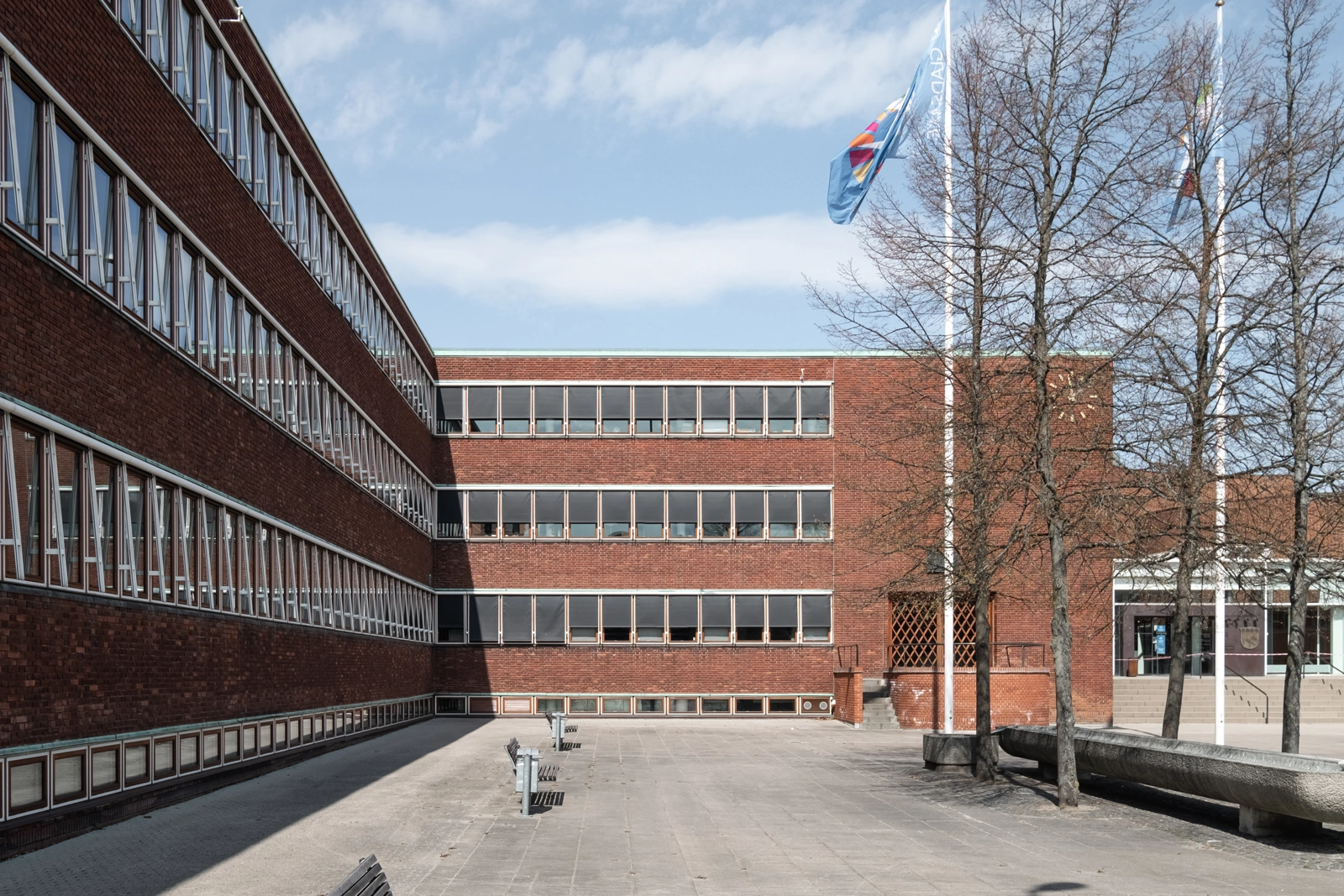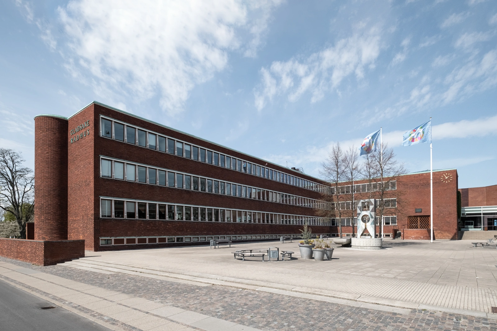 I 1936 vandt Vilhelm Lauritzen konkurrencen om et nyt rådhus i Gladsaxe og stod også for udvidelsen i 1953. Rådhuset skulle være moderne og demokratisk. Han organiserede bygningen som to spejlvendte L’er med sognerådssalen mellem de to korte fløje. Han lod den elegante halvcylinder-gavl og den foranstående lave mur træde helt ud i gadelinjen, så besøgende naturligt bliver ledt ind på rådhuspladsen. Som mange andre af sine projekter, stod Lauritzen også her for alt design og interiør, der igen er kendetegnet ved at være ærlige materialer som røde teglsten, kalksten og kork og med døre og inventar i elmetræ.