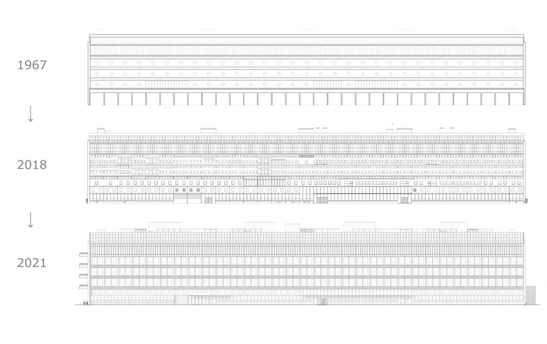 In 2018, Swedish Genesta bought the building from DSB Real Estate and, in collaboration with Vilhelm Lauritzen Architects, started the transformation from old freight terminal to a unique office building. Although the local municipal plan allowed to build more, everyone agreed from the beginning to revive the dilapidated building with the robust raw house as a foundation. It is far more climate-friendly than demolition and created a long-lasting and optimal physical environment for a modern workplace for up to 1,000 employees.