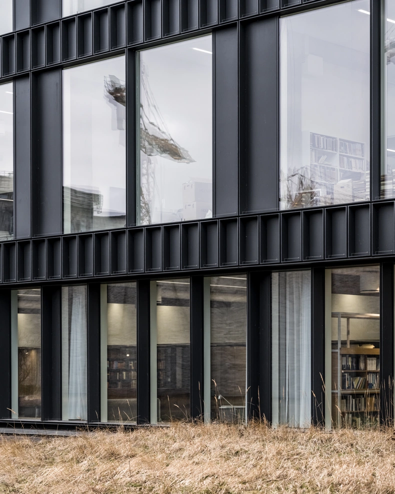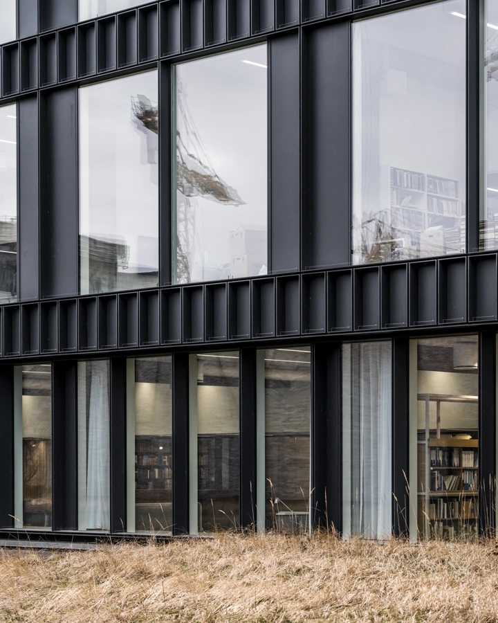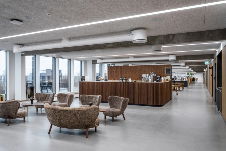 In the project, there has been a special focus on acoustics, where large parts of the building's surfaces are acoustically damped with handmade, micro-perforated hot-rolled steel panels with sound-absorbing material behind. They inscribe themselves in the character of the building and together with the raw concrete elements and solid oak, they create a warm, honest and Nordic atmosphere and experience.