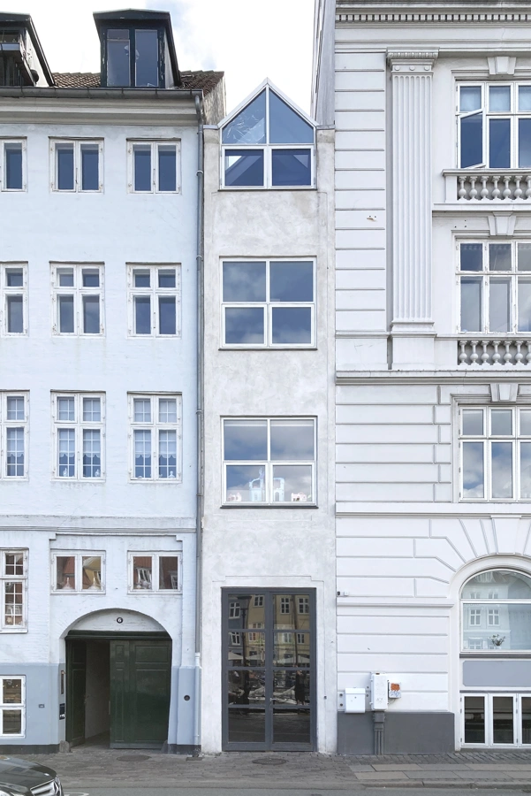 The house, which was built in 1887, was built as an infill between two existing buildings and is one of the narrowest houses in Copenhagen.