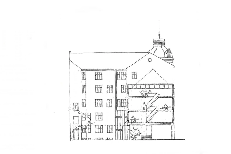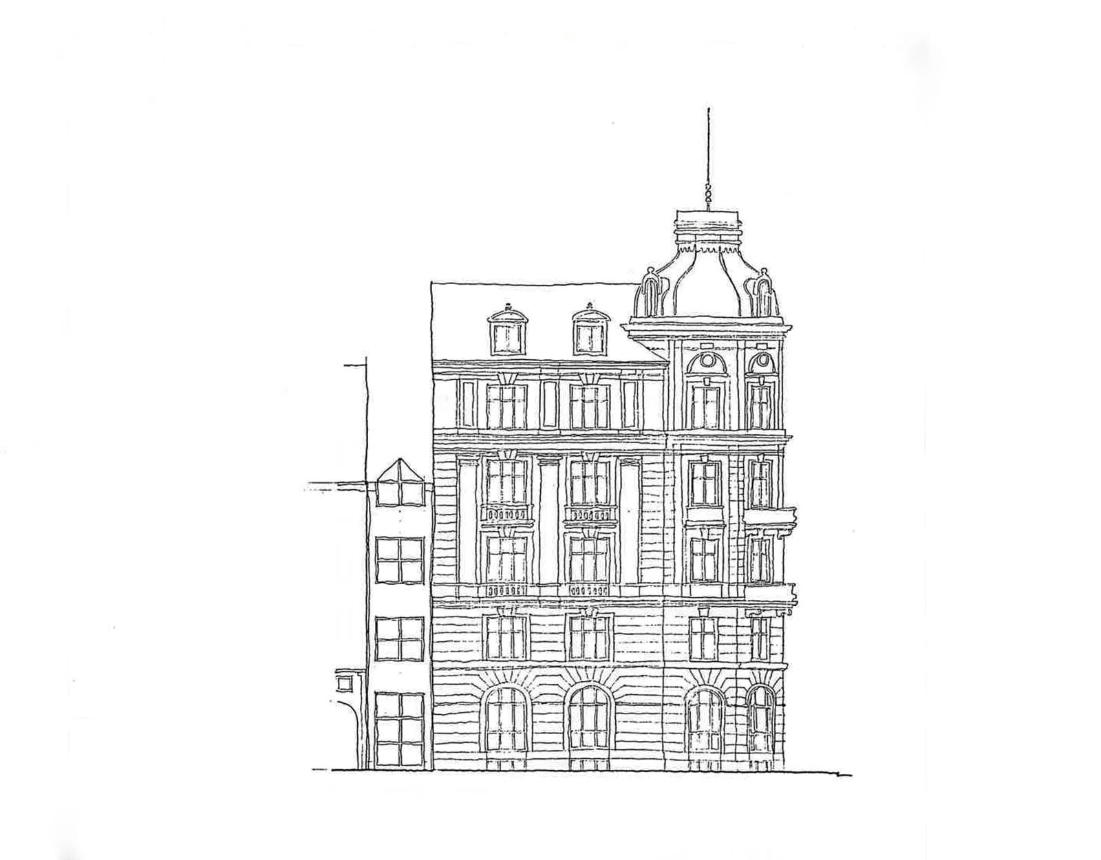 The project included a renovation of the existing corner house, and both the facade facing the street and the courtyard, the staircase, the basement and the courtyard were reviewed and improved.