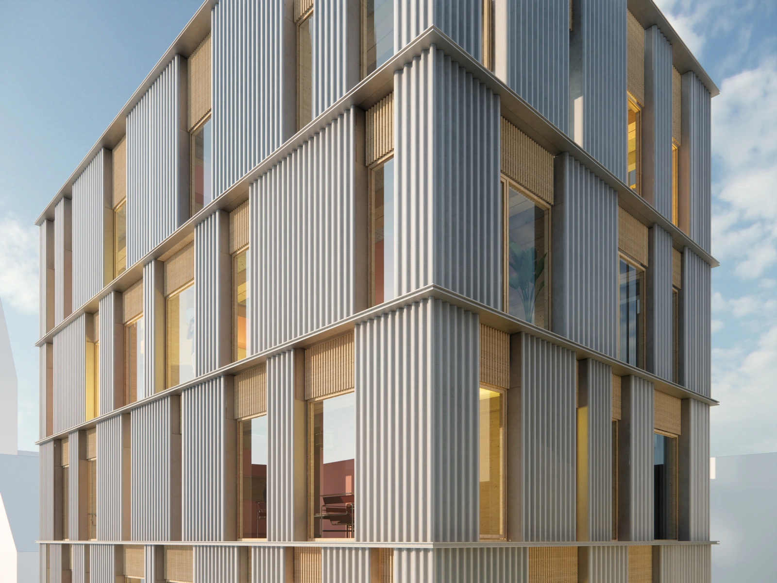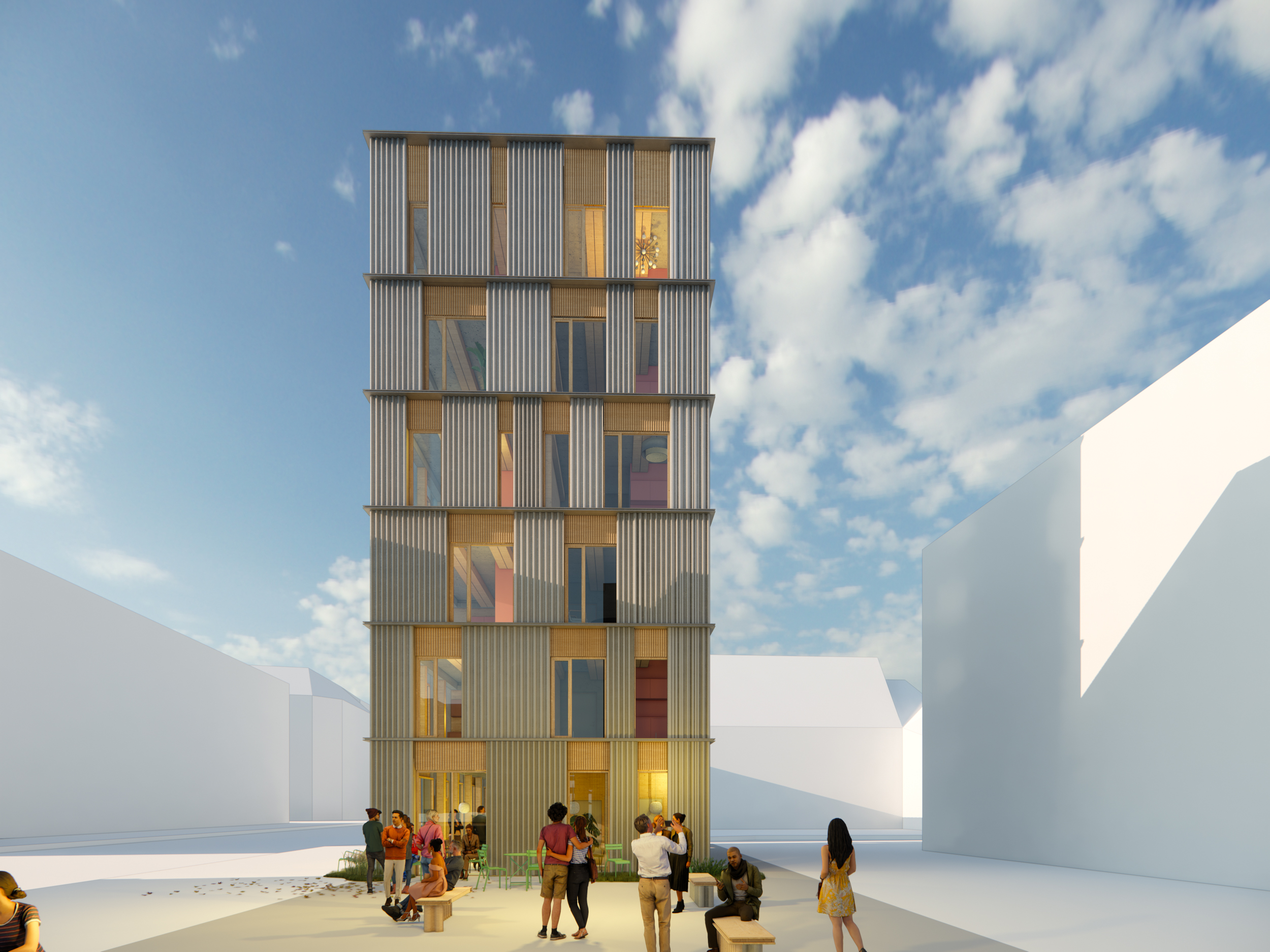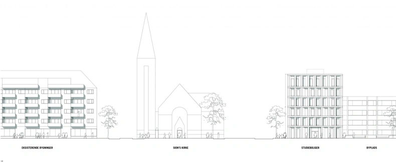 One of Denmark's first six-storey townhouses with wood as a supporting structure is underway built on Østerbrogade in Copenhagen. The house will be home to 20 students and a new urban space will be created on the ground floor and around the house.