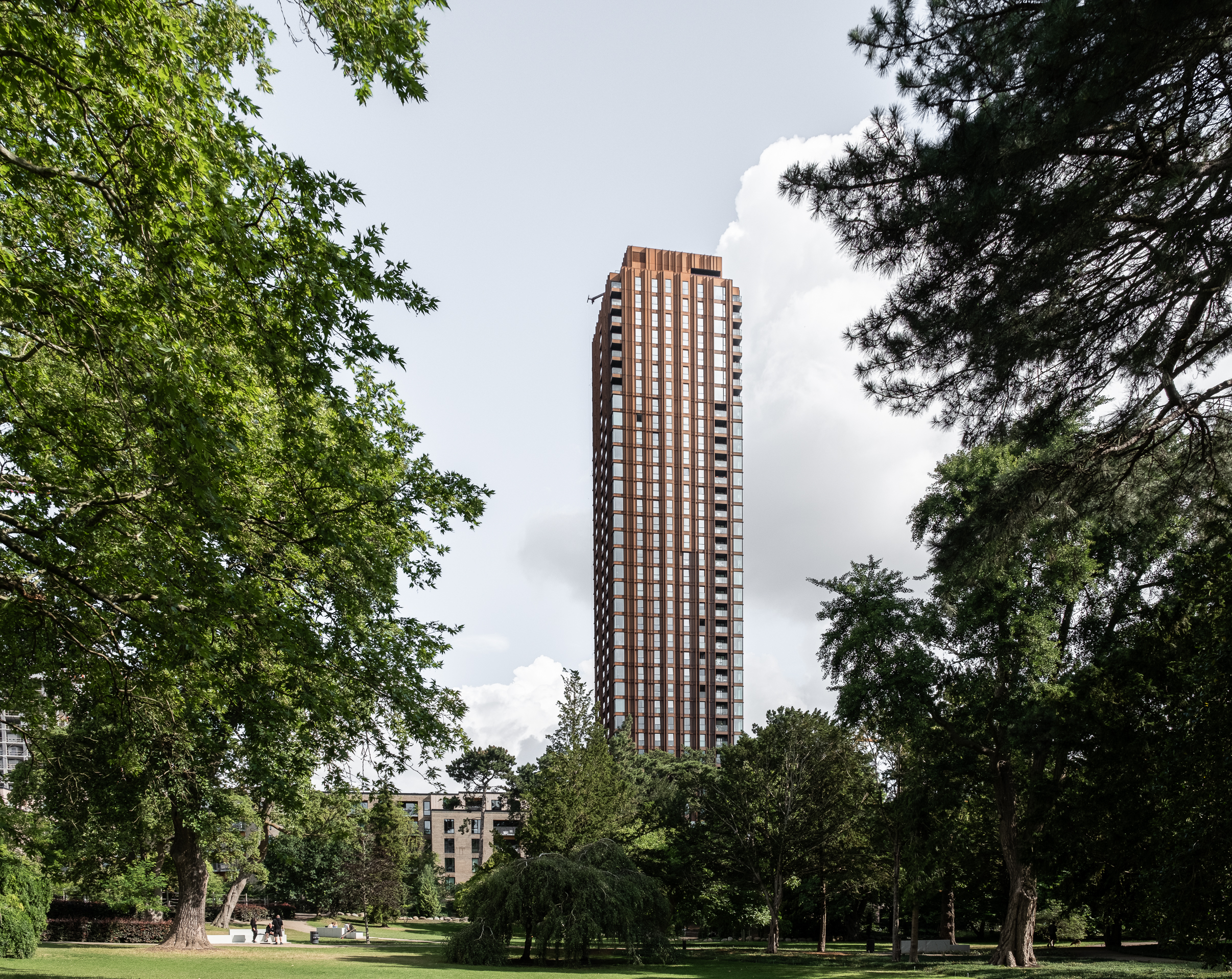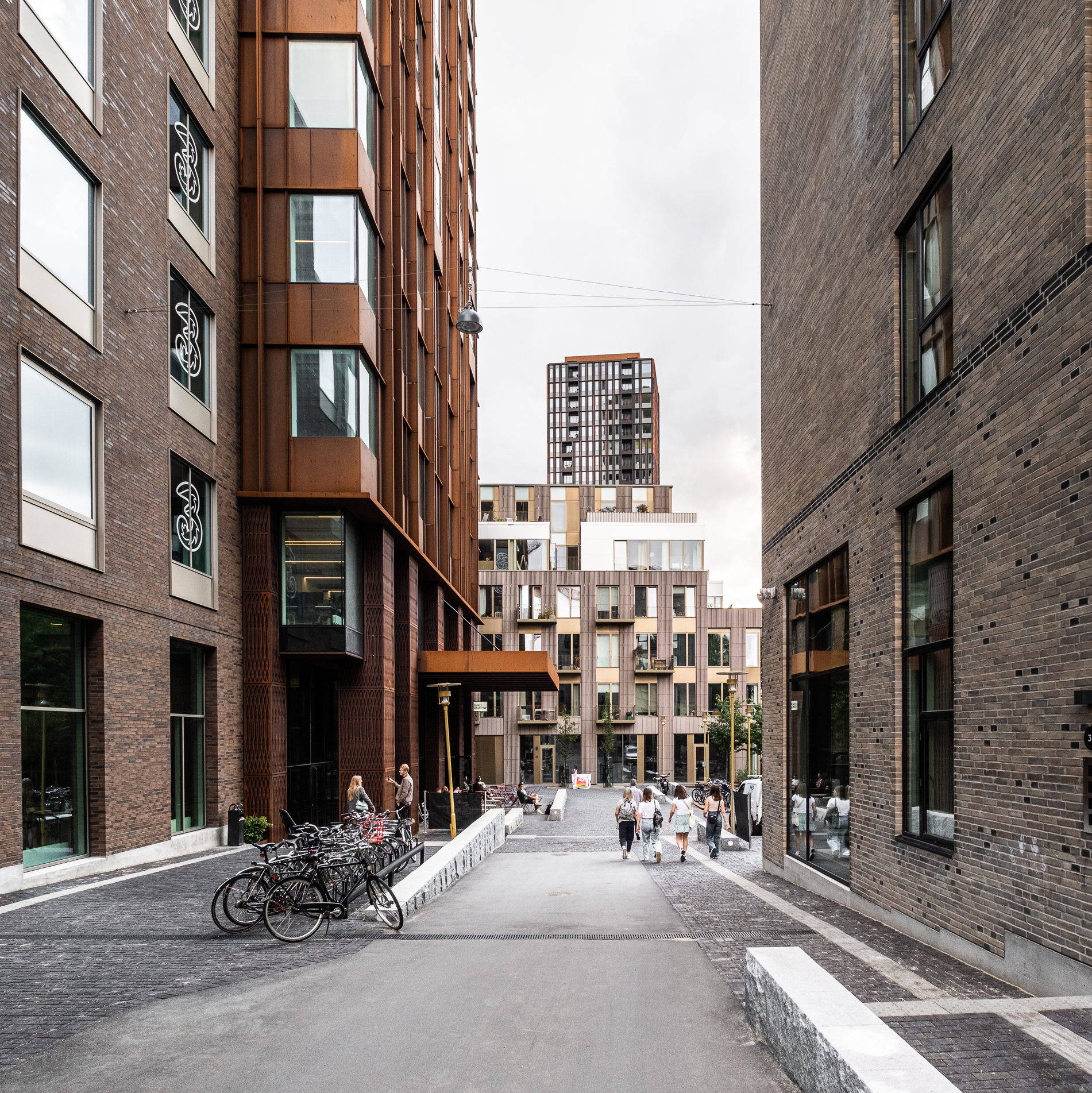 Carlsberg Byen's strong, historic brick buildings make demands on the newly added buildings; requirements that Pasteur's Tower meets with its stainless steel facade. The colour, the materiality and the matte surface mean that Pasteur's Tower both fits into and contributes to the larger whole. The deep relief in the warm red facade contributes to a play of light and shadow in harmony with the living textures of the brick buildings. To enhance the experience of a narrow and tall tower, the corners have been glazed, which concentrates the building's visual weight in the center of the facade. The result of it all is a modern tower that is firmly rooted in a significant past. With floor-to-ceiling windows of human proportions, you live with one of Europe's most beautiful cities literally at your feet.