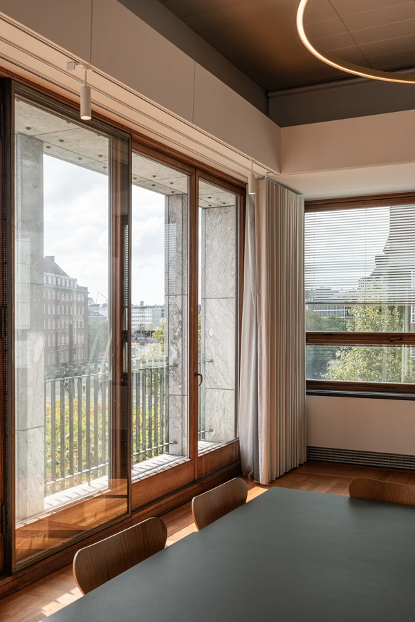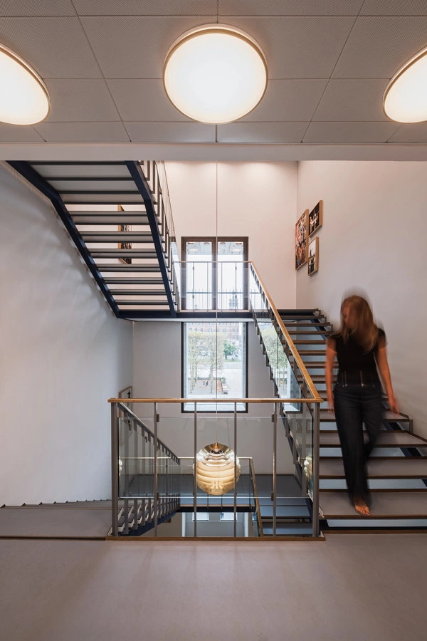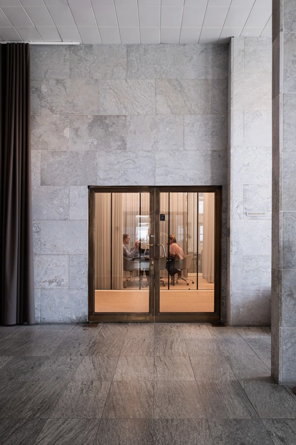 The aim was to retain, restore, and reuse as much as possible, introducing only elements that would add spatial and material value. New functions were therefore created with reference to the robust, expressive materials of the original building, and many components were reinstated in new contexts. Teak doors, brass handles and lamps stored in the basement for decades – a small archive of cultural heritage – have now been reintroduced and given new life across the floors.