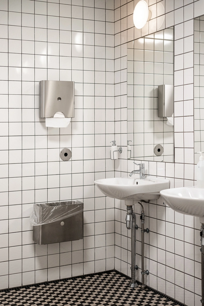 Beneath the linoleum in the restrooms, the original tile mosaics were discovered. These were carefully sorted, cleaned, and reinstated across all toilets. Where the original tiles could not be salvaged, or where extensions and adaptations required additional tiling, new pieces were introduced – crafted to echo the originals as faithfully as possible in both material and appearance.