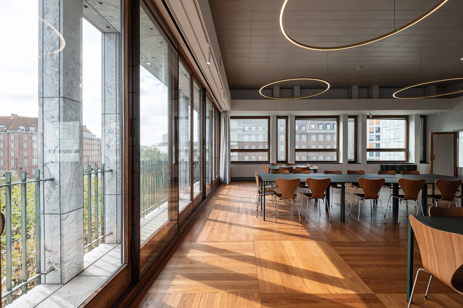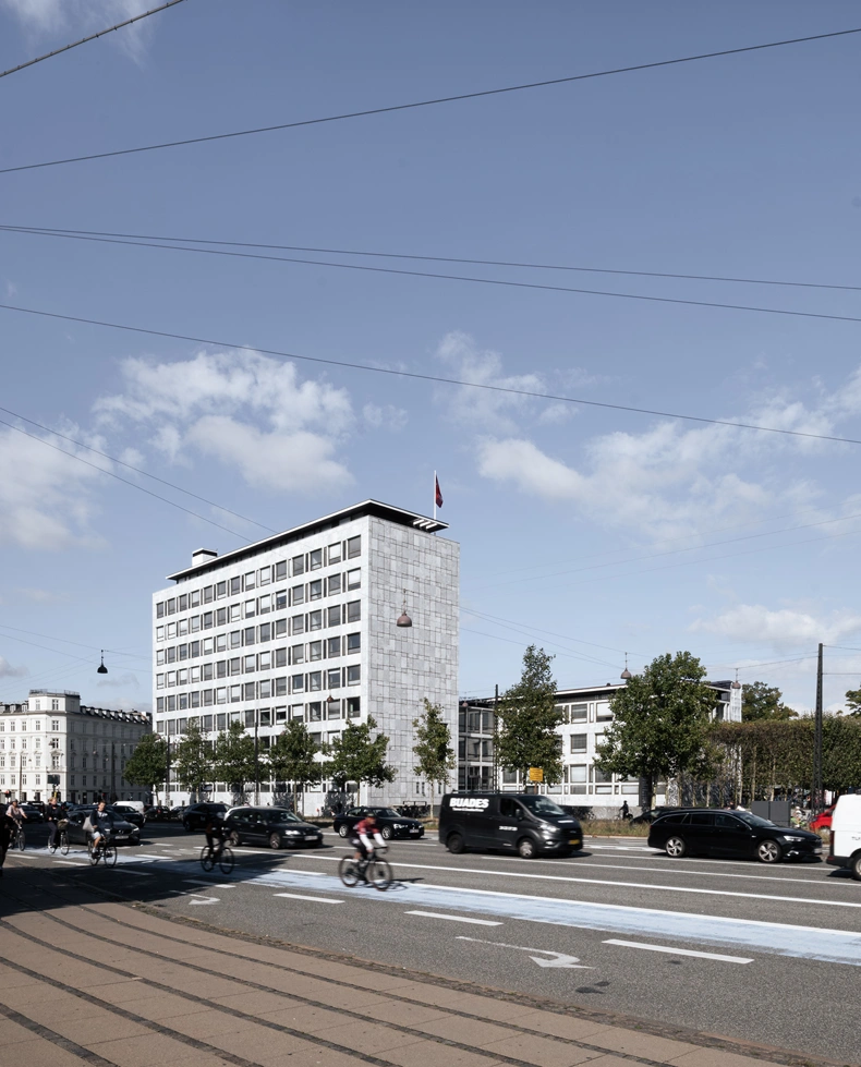 Right in the centre of Copenhagen, lies a modernistic gem that since 1959 has been a significant part of the cityscape with its iconic facade in natural stone. Characterized by clean lines, geometric patterns, and natural materials such as marble, teak, and brass, it is one of the earliest examples of a Nordic modernist office building and is now home to Realdania and their more than 300 employees.