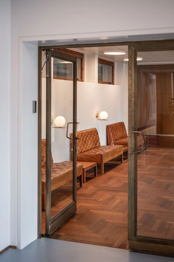 Over time, multiple renovations and redesigns by various users had shaped the building’s interiors and blurred its original expression. Yet, in the details, the house still held a wealth of beautiful, preservation-worthy materials, features and craftmanship. These became the foundation for a renovation made necessary both by the wear of time and by a shit in ways of working. The vision was to restore the building’s original architectural character while creating a workspace supporting the contemporary ways of working.