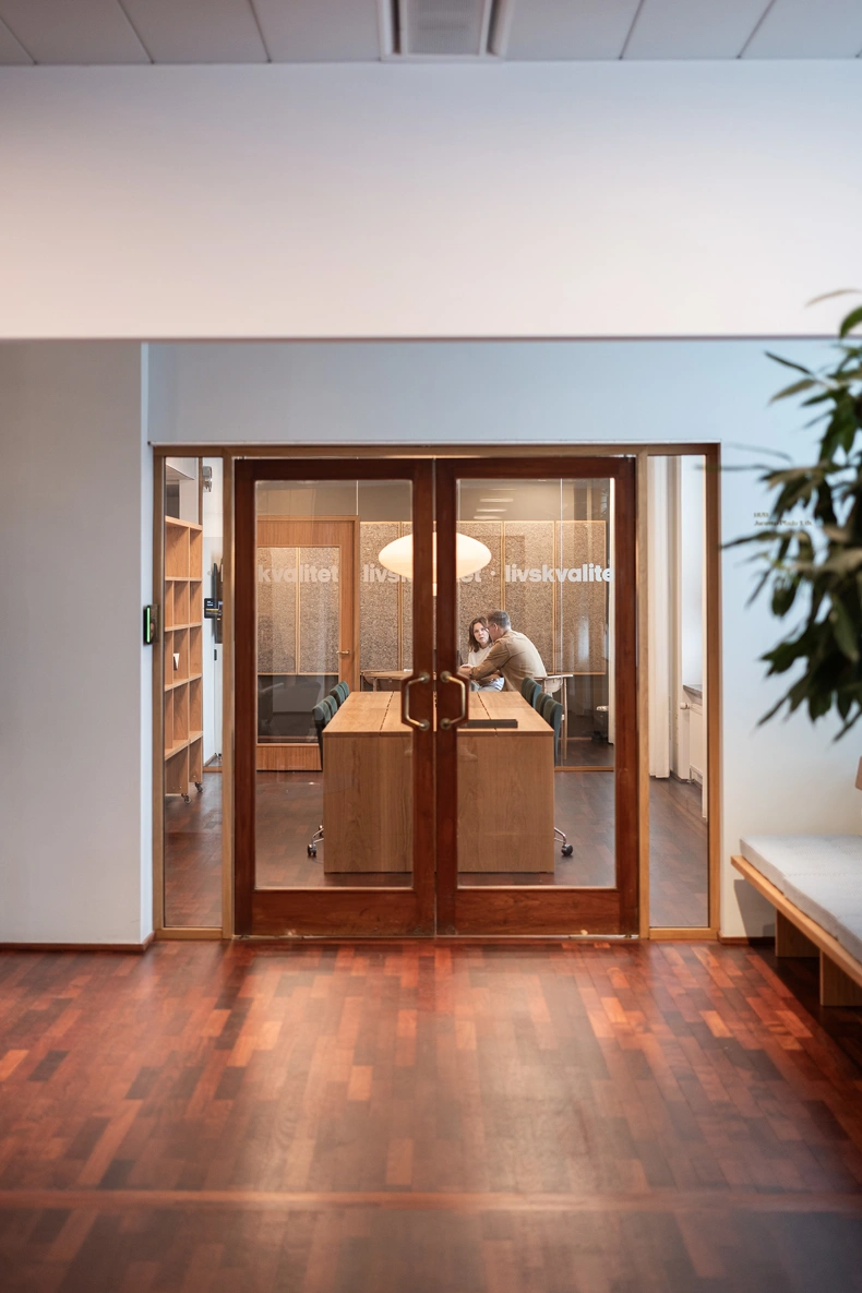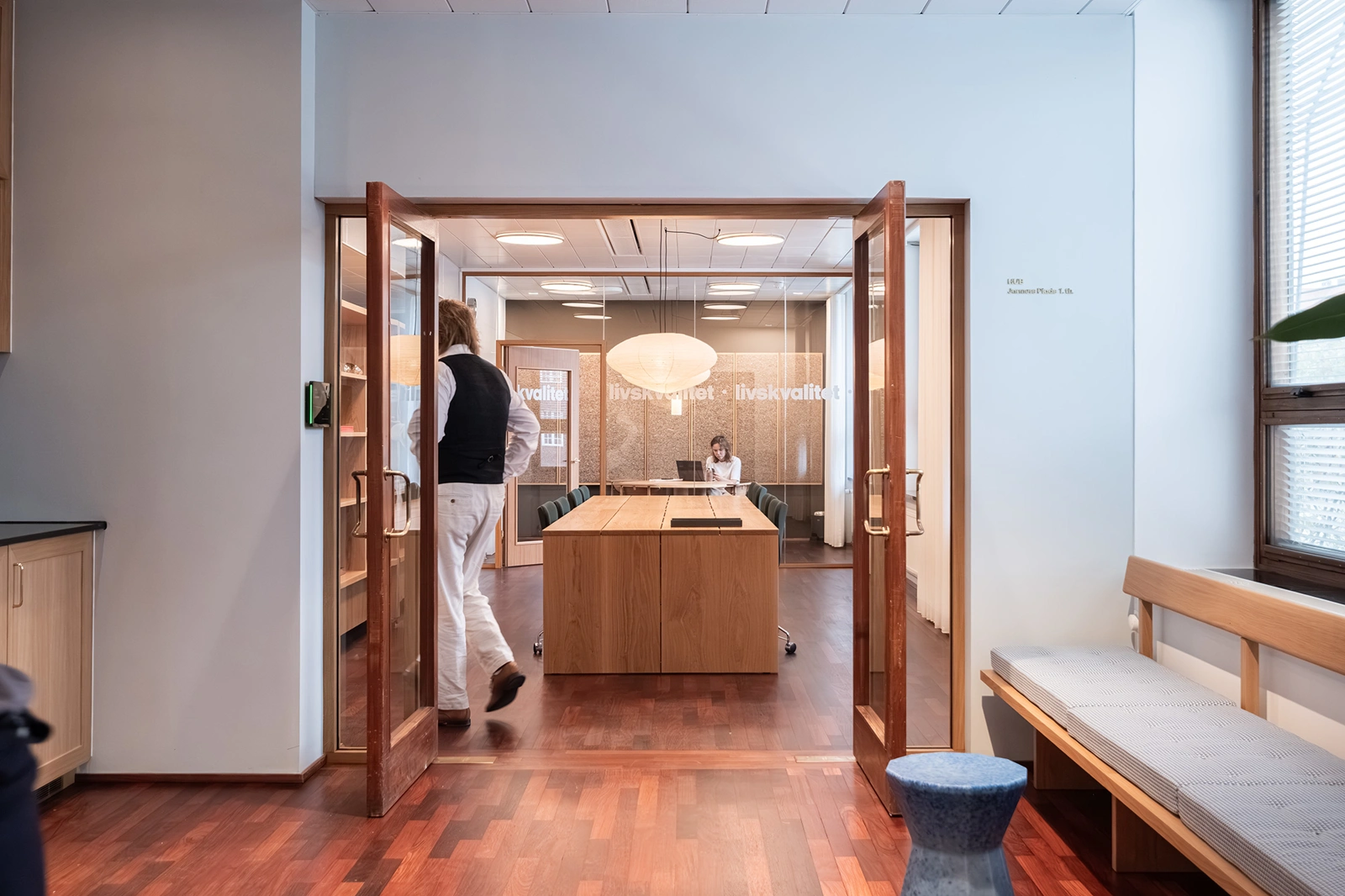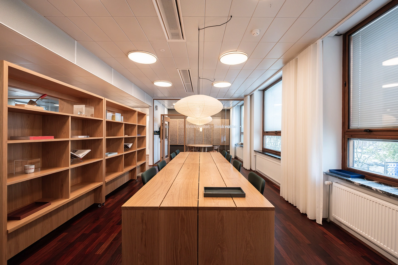 Over time, ways of working have evolved, the renovation has therefore adapted the physical spaces to contemporary needs for open and inclusive spaces. In the reception area, the counter has been relocated to create better flow and improve the indoor climate.