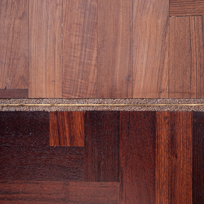Existing wooden floors, tiles, and linoleum surfaces were cleaned and restored. These, together with new flooring that replaced dark wall-to-wall carpets, now tie the building together across the levels. The house features elegant transitions between different materials, with cork joints both defining and uniting the surfaces.