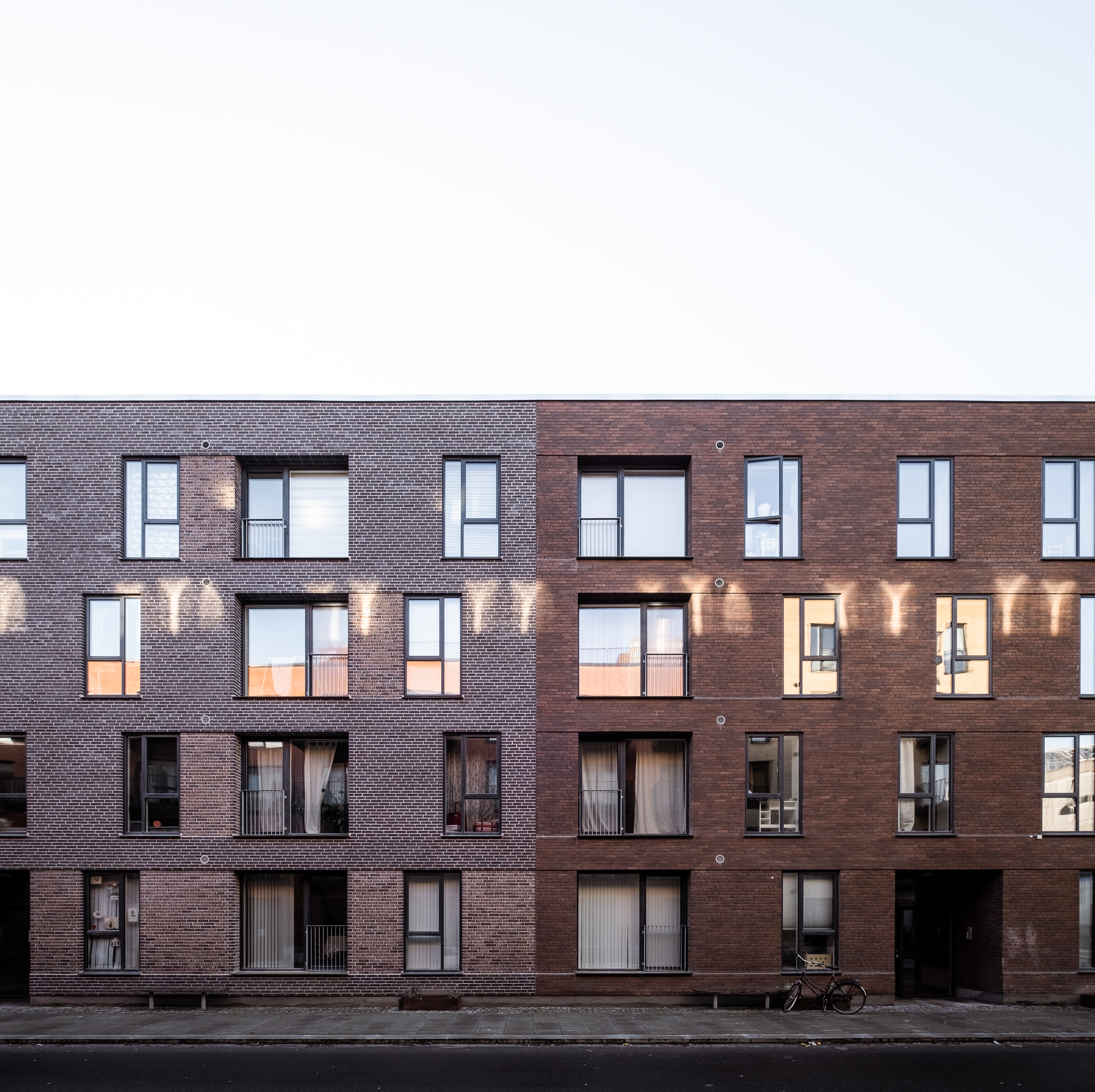 With the exception of the corner apartments, all homes are well-lit, which are accommodated with one large common room that stretches from façade to façade, and which contains a kitchen-dining room and living room.