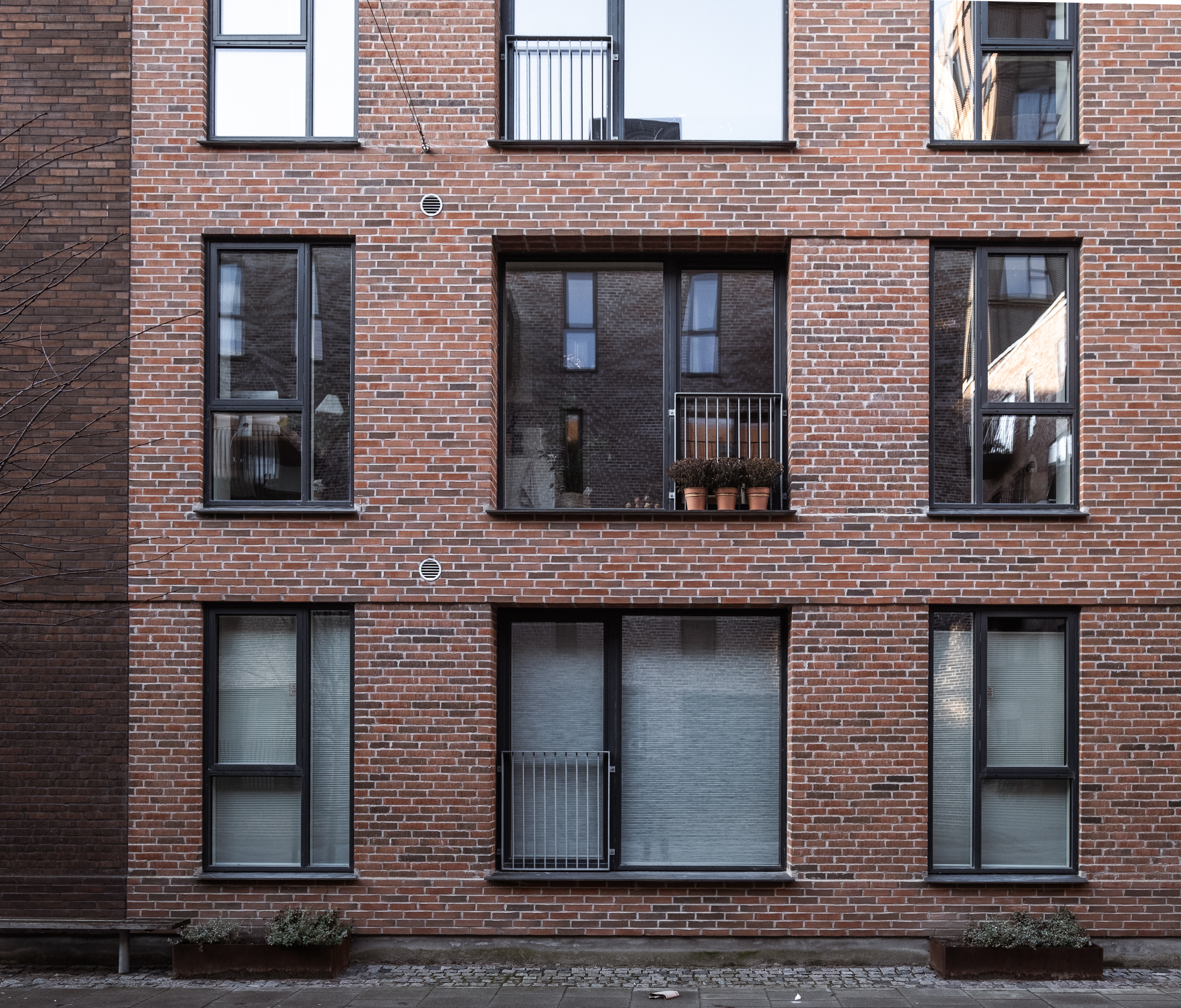 Apartments on the ground floor are raised 0.8 meters above street level, thereby minimizing views from the street. Work has also been carried out with other measures in the processing of the façade and edge zone, which ensure a high degree of privacy in the ground-floor apartments.