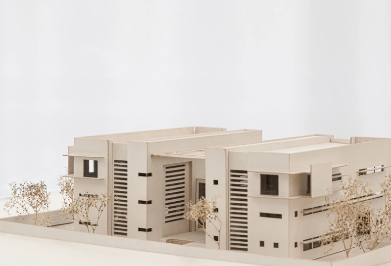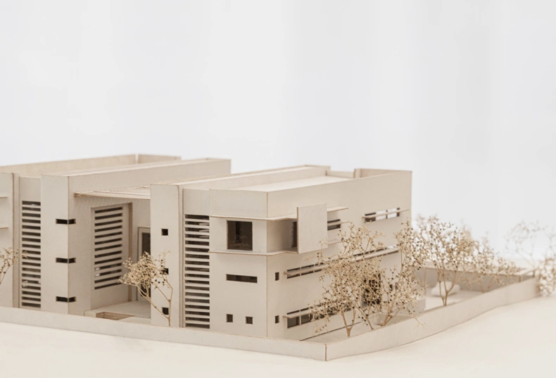 The floors are made of local Chanfuta wood, and local carpenters made all carpentry details. The white-painted concrete walls are uncomplicated surfaces that are easy to maintain. The details around windows and doors – as well as recesses and enclosures for privacy, and protection against the strong sunlight – emerge naturally out of the overall simplicity of the building.