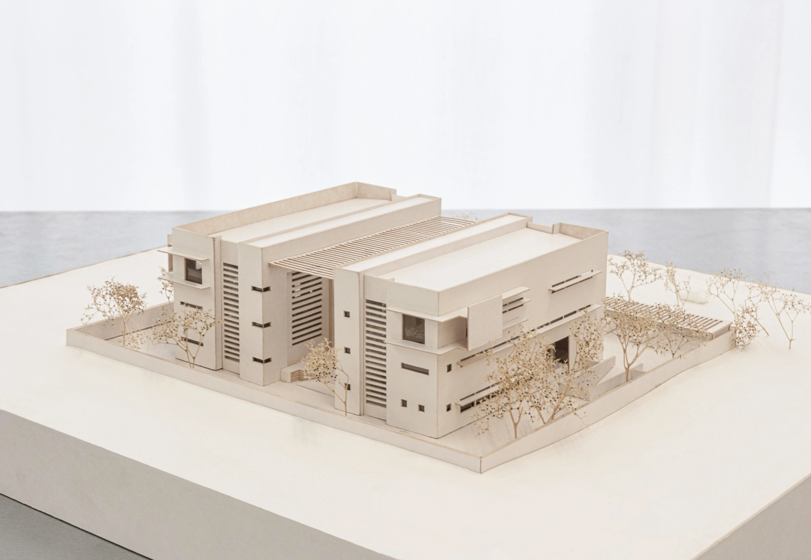 Inspired by the architect Louis Kahn, the roof of the terrace is a steel-slated pergola that cools down the outdoor area by generating natural ventilation from hot air rising from the flooring. Simultaneously, it connects the embassy buildings and symbolises the cooperation between the Nordic countries.
