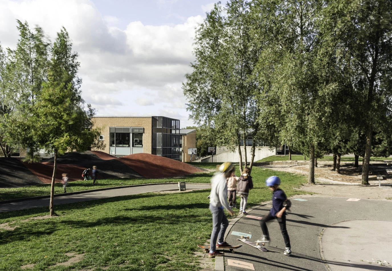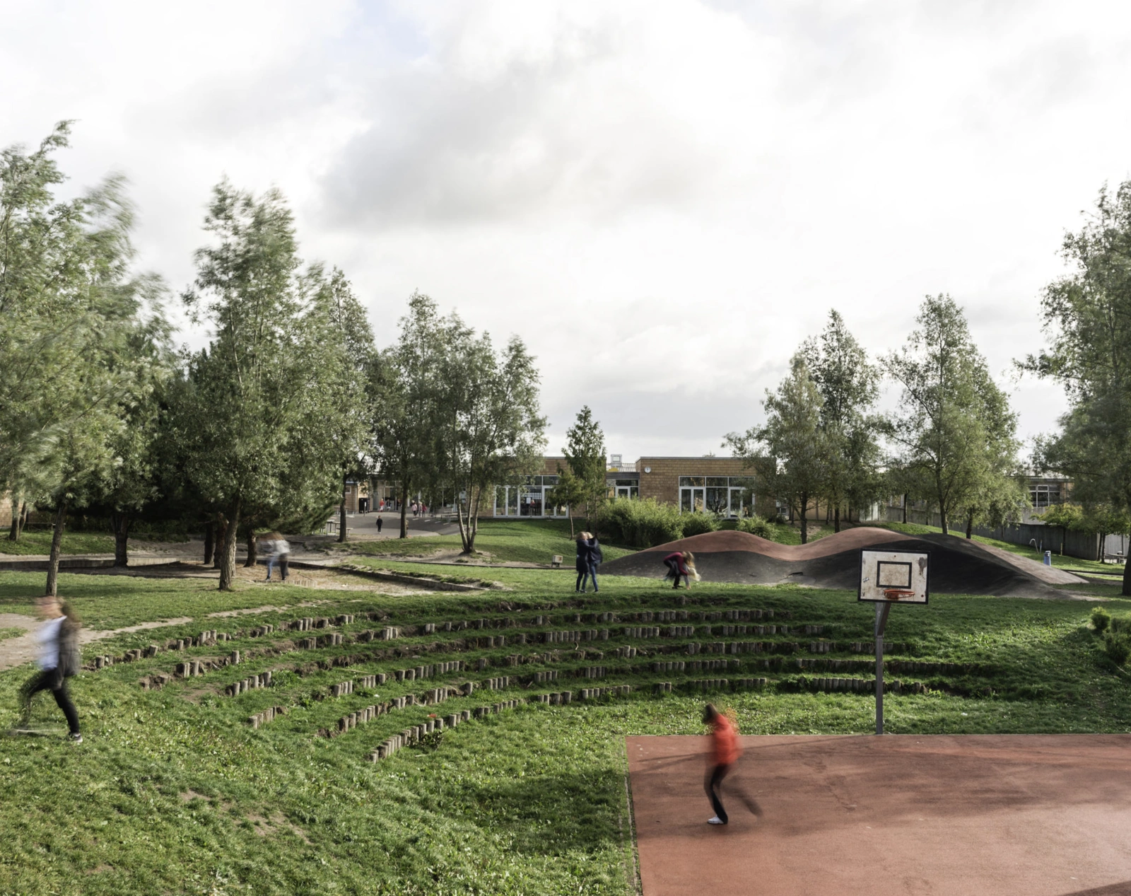 ‘The Garden of Knowledge’ is placed together with the other educational spaces in the middle of the complex. The garden is a 1:1-lab for a series of practical classes.’”The Garden of Knowledge” is designed to be a part of the learning process in, for example, natural science and cooking. We have a herbal garden, a vegetable garden, and we have fruit trees too; so the children can experience the change of seasons and harvest the food themselves. I remember from my time in school how dull it was to sit in the small, fully paved courtyards’, says Torsten Stephensen, partner at Vilhelm Lauritzen Architects.