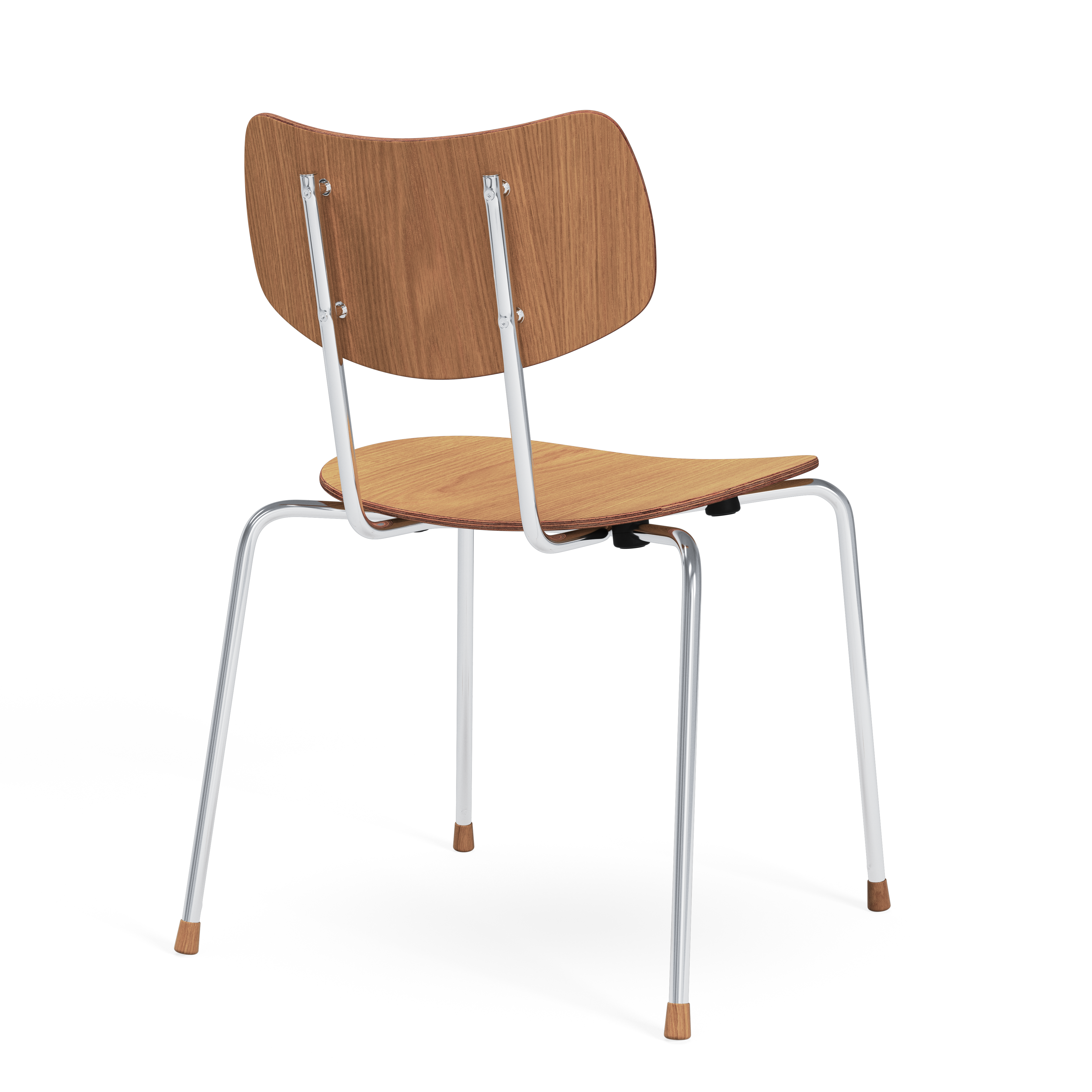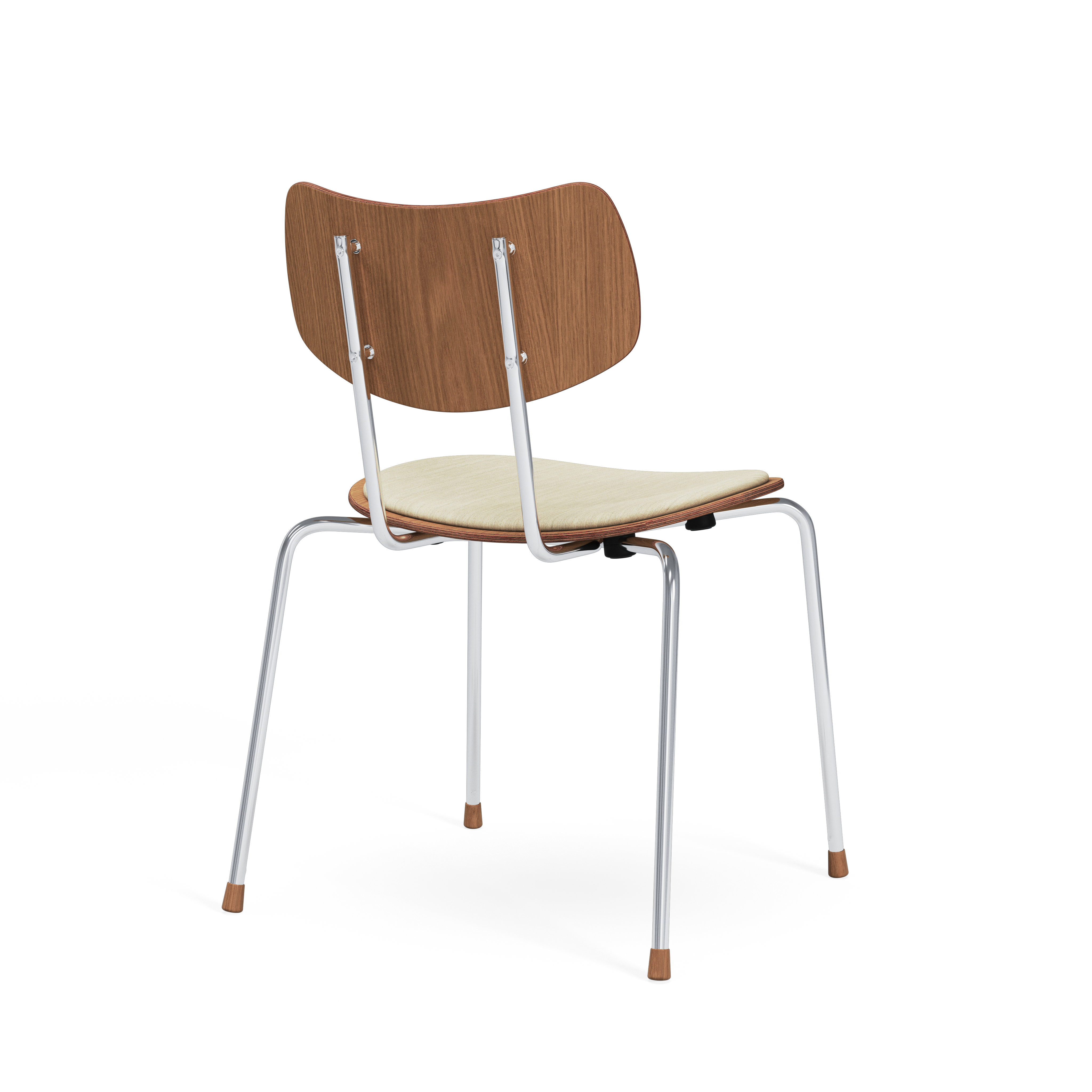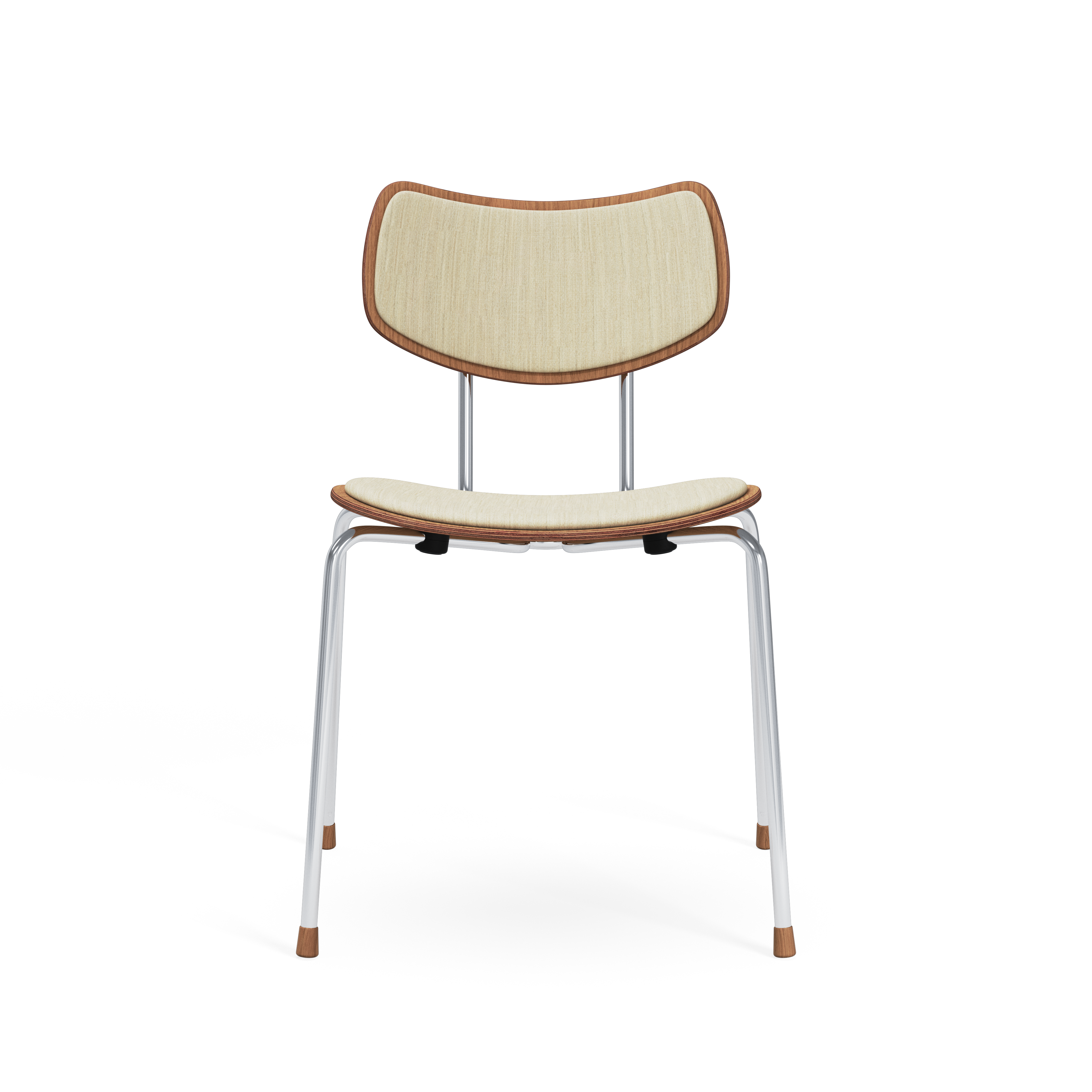 Vilhelm Lauritzen's uncompromising attention to detail is also evident in the stackable Vega Chair, which comes in an elegant material mix of steel, wood and textile or leather. The precise upholstery on the seat and back gives the chair a sleek and refined look. For a more pared-down look, the chair is also produced without upholstery, bringing the tactile oak into full focus.