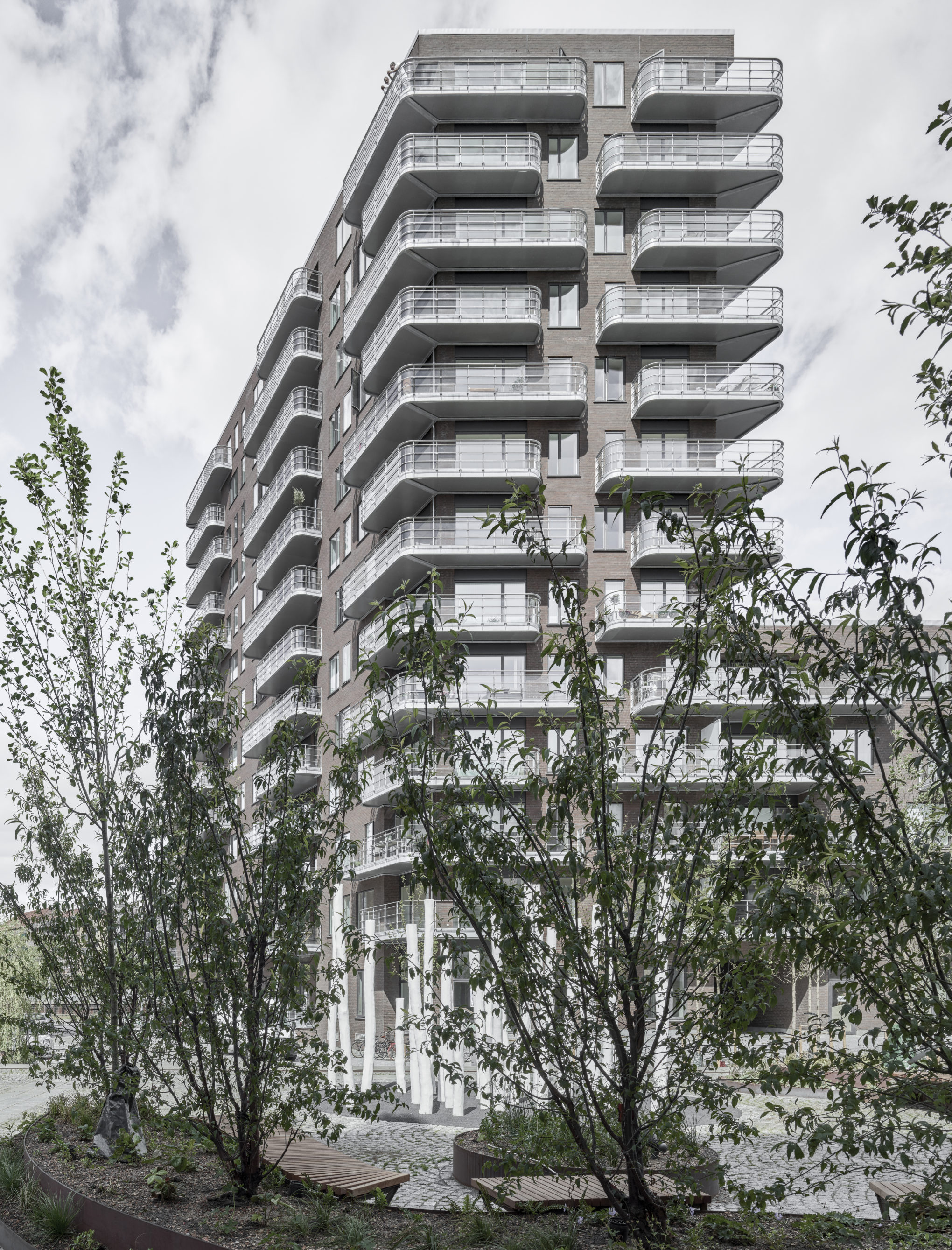For at skabe læ for vinden er altanerne trukket delvist tilbage, og deres glasfacader påsat markante vandrette medløbere beskytter ligeledes mod både vind og lyd. Man har bevaret en forbindelse til det maritime område ved at opføre altanerne i galvaniseret stål, som også tåler det til tider hårde klima.