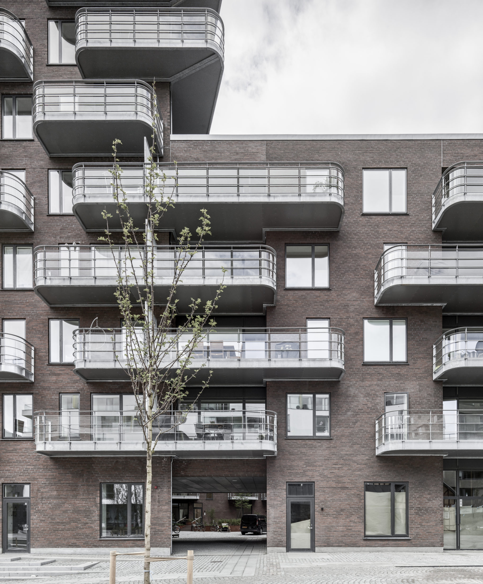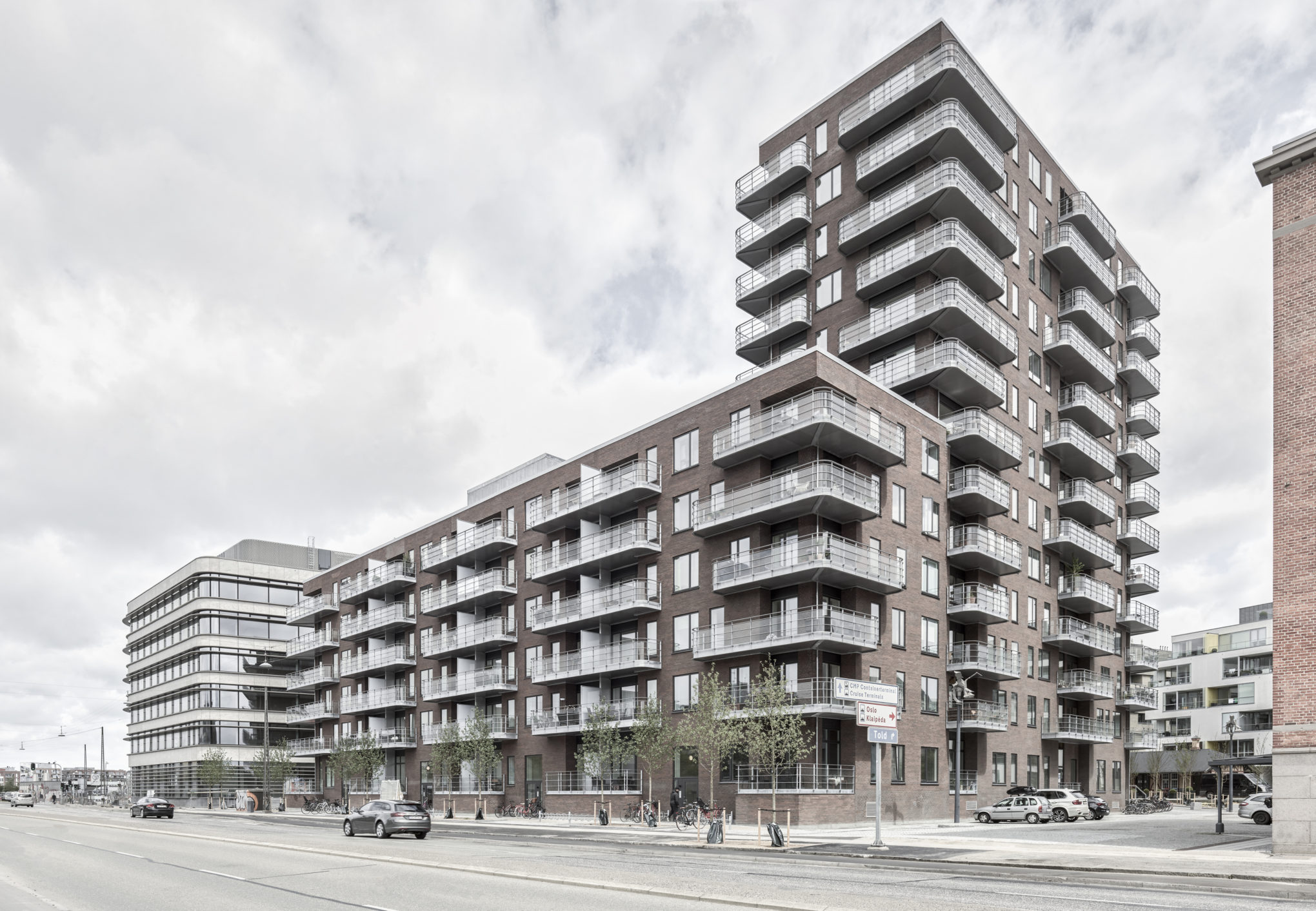 Ud mod Kalkbrænderihavnsgade ligger de mindre boliger. Her er der forsatsvinduer på alle partier, så man ikke vil være generet af trafikken inden døre.