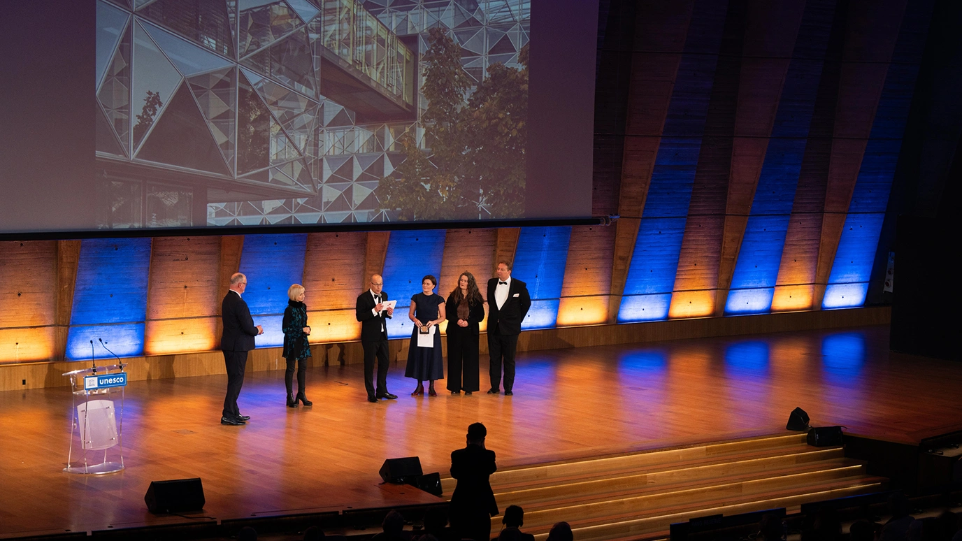 Sammen med universitetsdirektør Søren Munk Skydsgaard, vicedirektør Karen Dilling fra Københavns Universitet og Vibeke Lydolph Lindblad, partner og CEO hos Christensen & Co Architects, var vi repræsenteret af vores kollega Simon Pihl ved ceremonien i Paris torsdag den 4. december 2025.