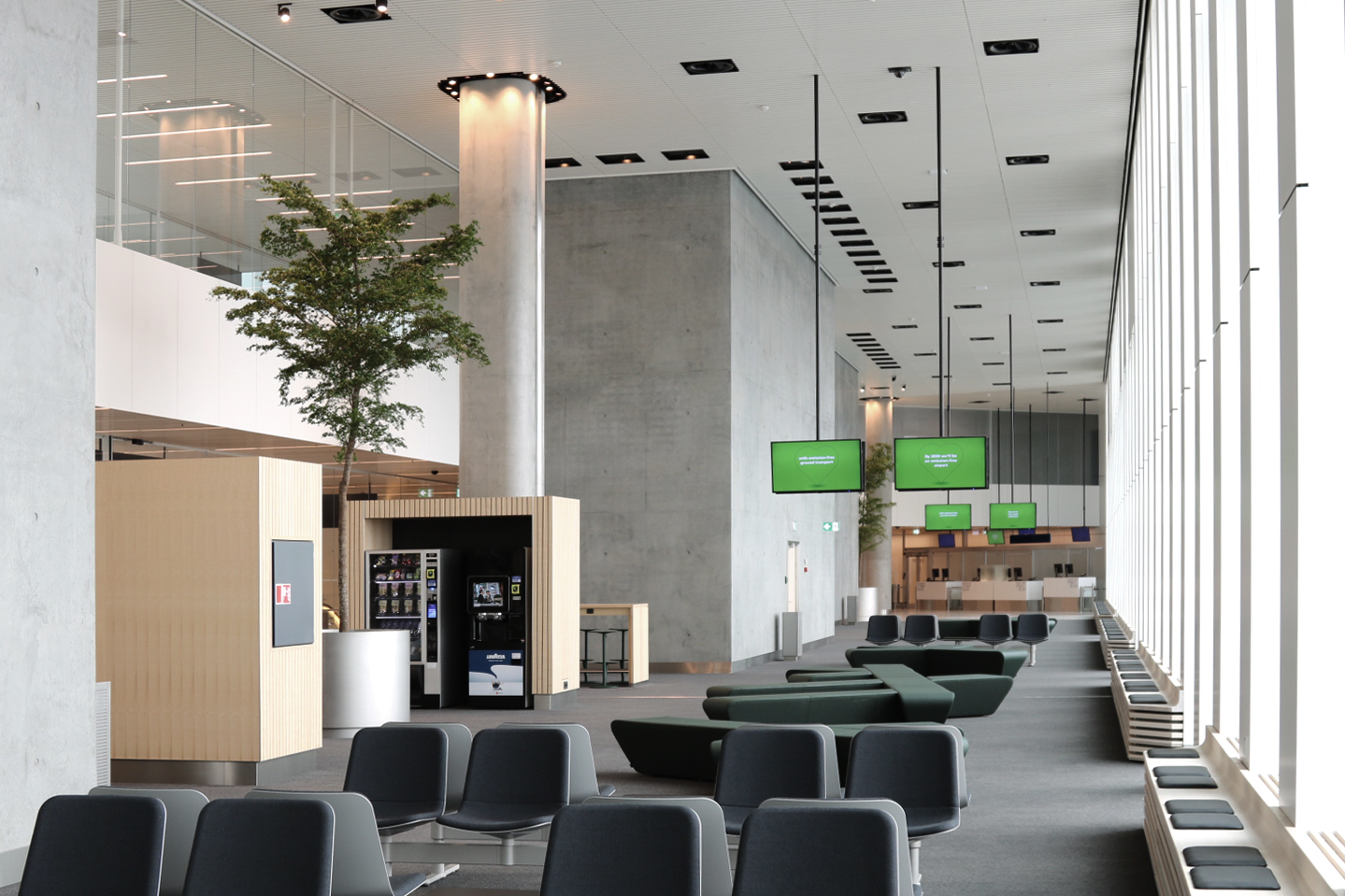 ”Vi har arbejdet med en ydmyg og subtil arkitektur, hvor alt er integreret, så bygningen fremstår enkel, ren og nordisk. Funktionelt understøtter den passagernes rejse med intuitive elementer som stenbelægning, der signalerer, at du er i bevægelse i modsætning til gulvtæpperne i ventezonen, der indikerer ro og absorberer lyd”, siger Simon Natanael Svensson.