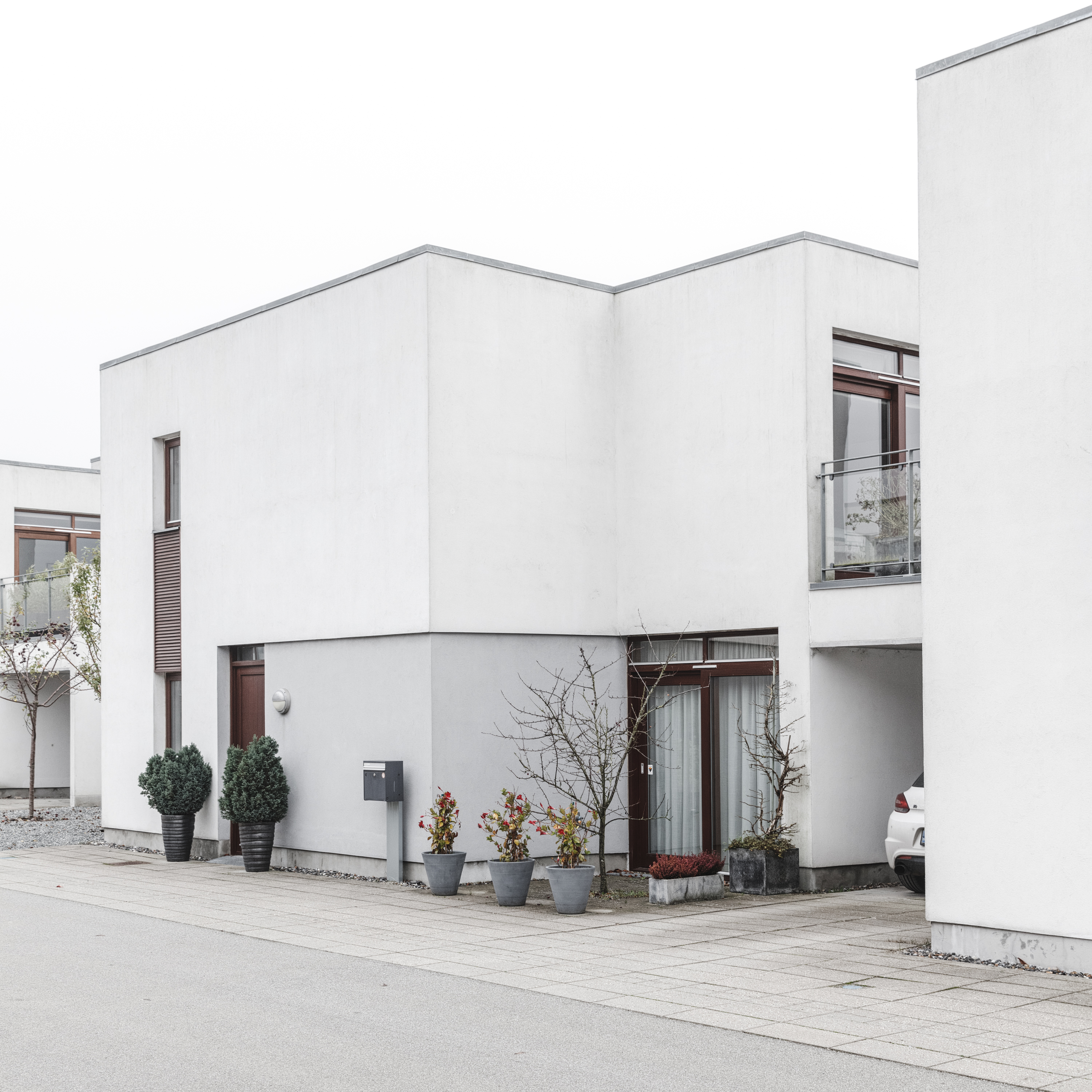 De har små facadespring, en mangfoldighed af rumlige kvaliteter og kontakt til en smuk grøn park. Et kig ned ad den smalle adgangsvej, der breder sig ud i forskellige fordelingsstier, afslører forskellige facadekompositioner med afskærmede gårdhaver.