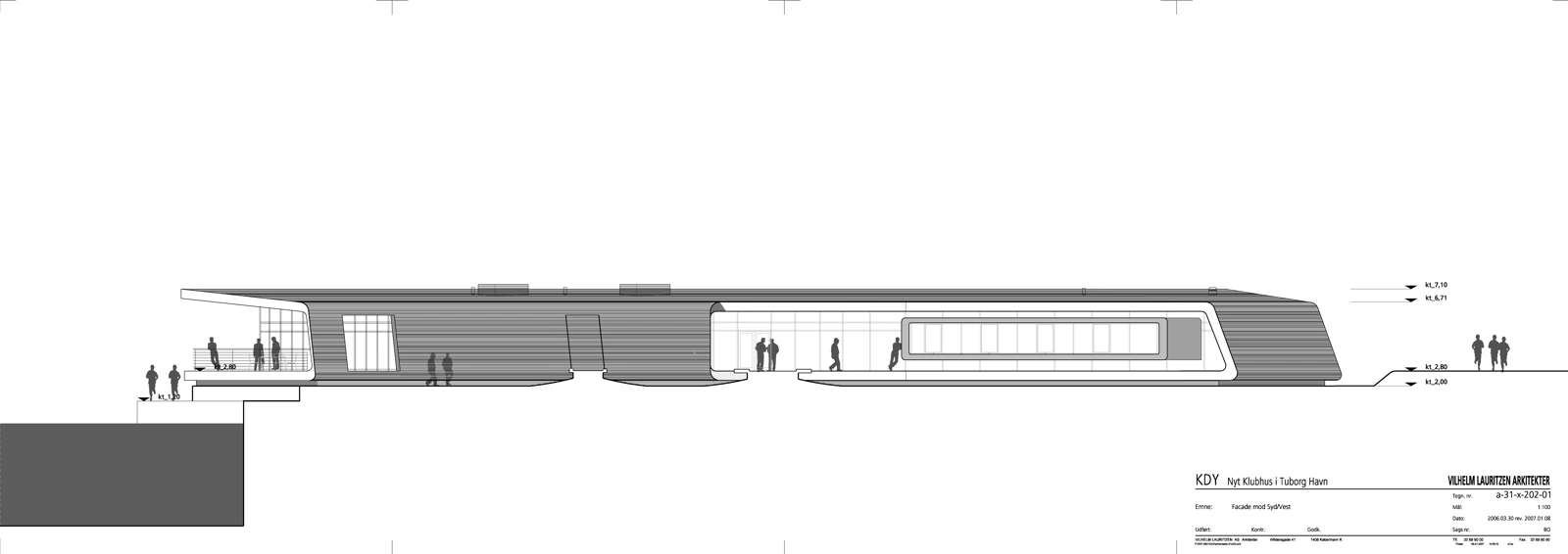 Den Kongelige Danske Yachtklub har en central beliggenhed med en vidstrakt udsigt til vandet omkranset af et system af gangbroer, trapper og ramper, som formidler overgangen mellem by og havn.
