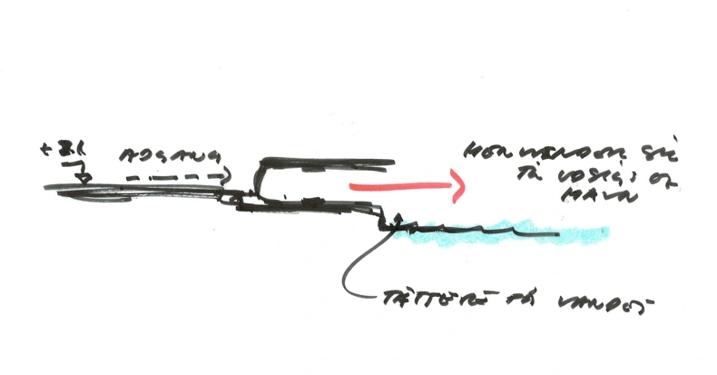 Vifteformen skaber ideel skygge fra sydens sol og skærer kun formen, hvor der er behov for indgange. Når du ankommer gennem indgangen til den lukkede sydlige facade, giver designet en fuld udsigt over havnen og et kig på havet.