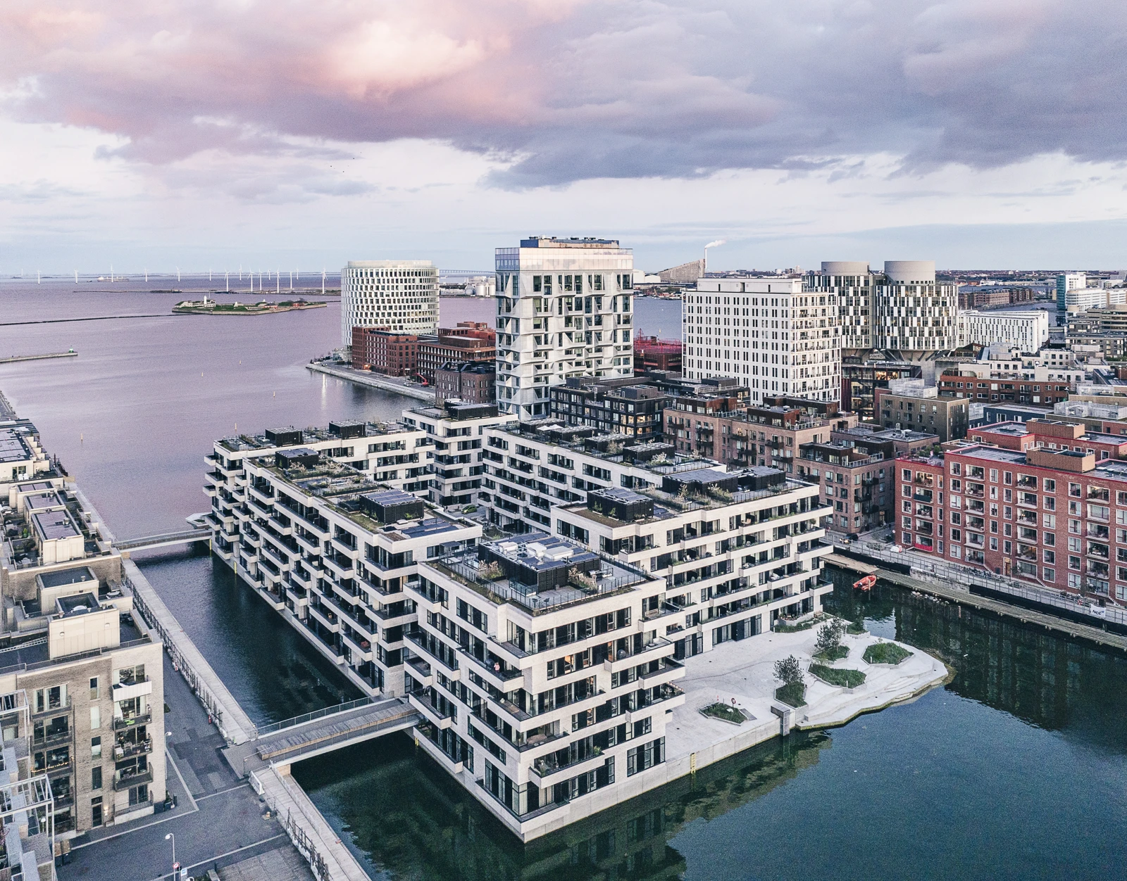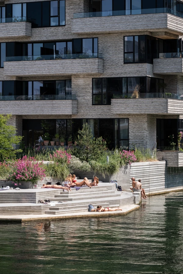 Fra de omgivende, havnenære uderum og fra boligernes altaner åbner udsigten sig over Øresund og mod de omgivende kanaler. Fra alle boligerne understreges denne oplevelse med et direkte og ubrudt udsyn til vandet. Boligerne varierer i størrelse og udtryk, hvilket lægger op til en varieret beboersammensætning.
