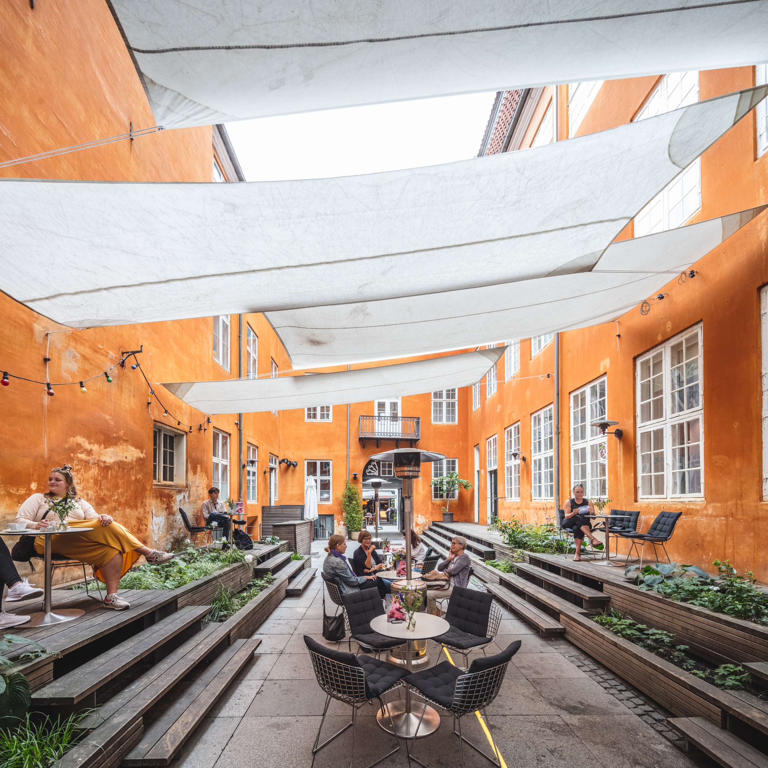 Gården mod Læderstræde er åbnet op, og der er etableret en glaselevator til alle etagerne. Ankomsten fra gårdrummet danner en alternativ indgang til den mod Gl. Strand.