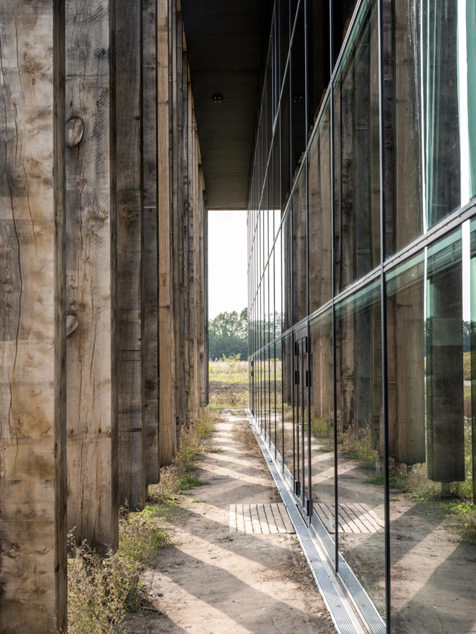 96 søjler af rå egetræ byder besøgende velkommen til LIFE Campus – et visionært nationalt læringscenter, der skal vække børns interesse for naturvidenskab. Med en placering midt på gamle jagtmarker manifesterer LIFE Campus et samspil mellem natur og videnskab med et digitalt læringsmiljø, der omfatter højteknologiske laboratorier, en 360-graders projektionsauditorium og moderne arbejdspladser.