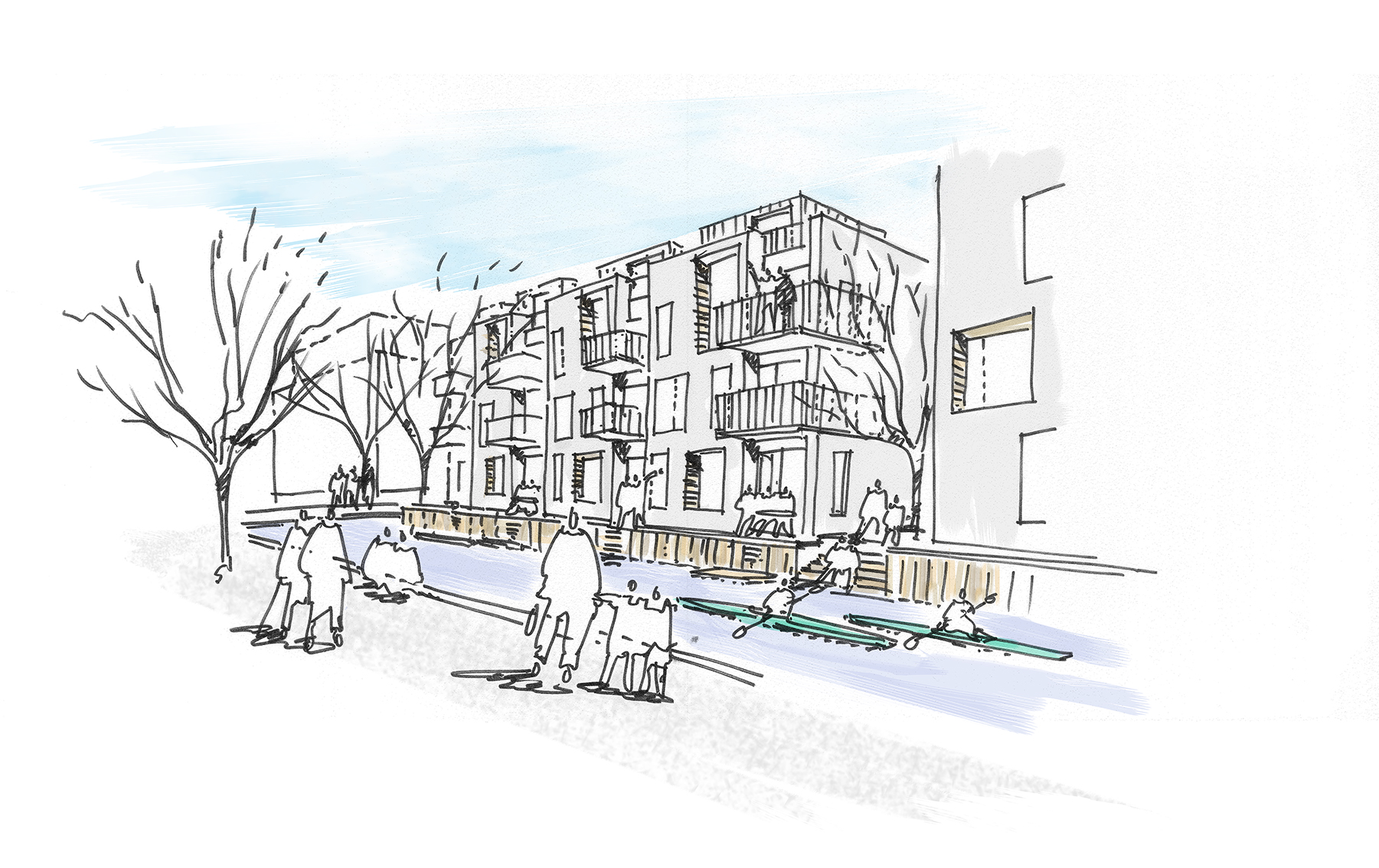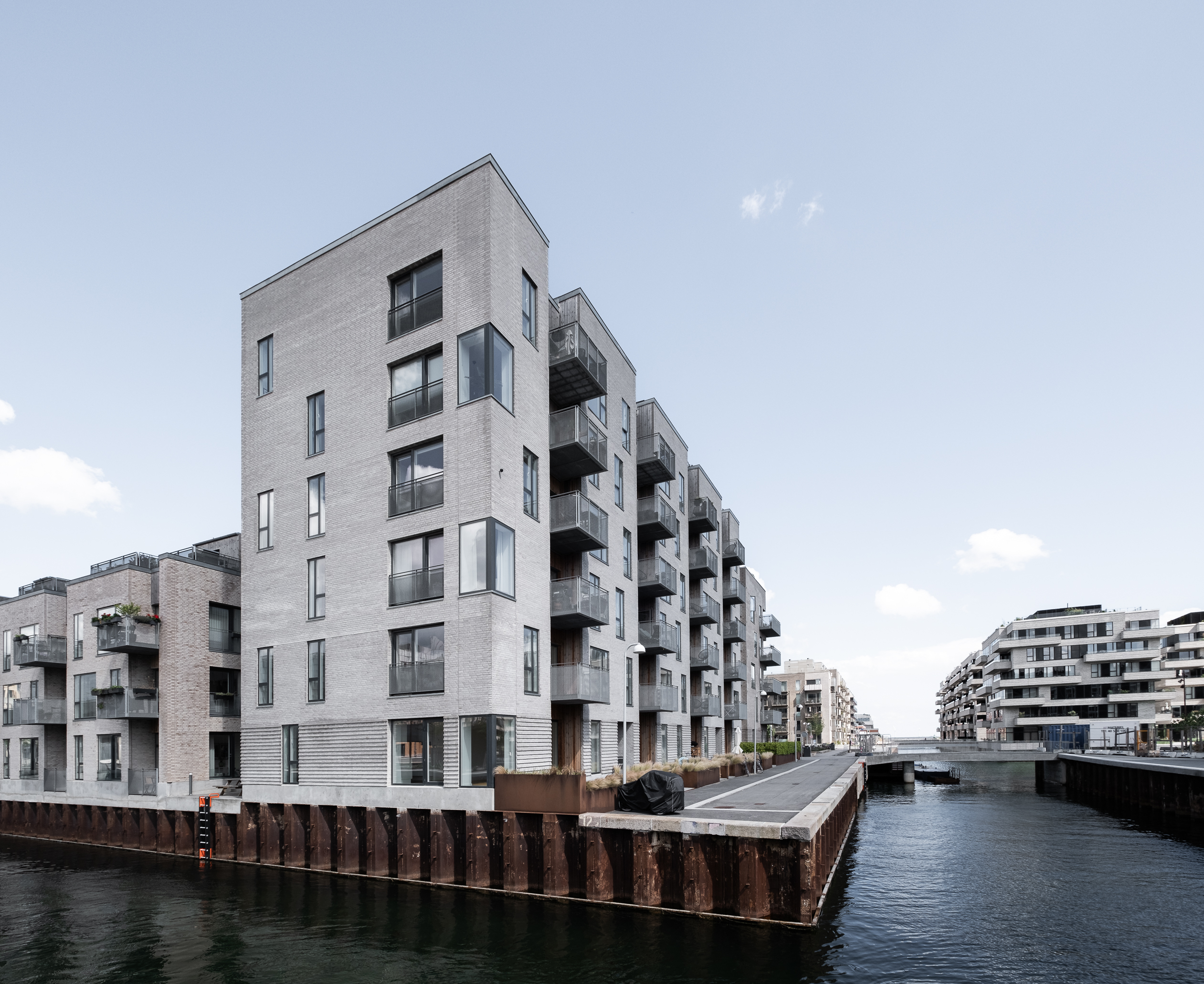 Facaderne er modelleret med fokus på variation og visuelle oplevelser ved at arbejde med skiftende bygningshøjder, husdybder og facadematerialer, der skaber genkendelighed og egenart til Nordhavnshuset.