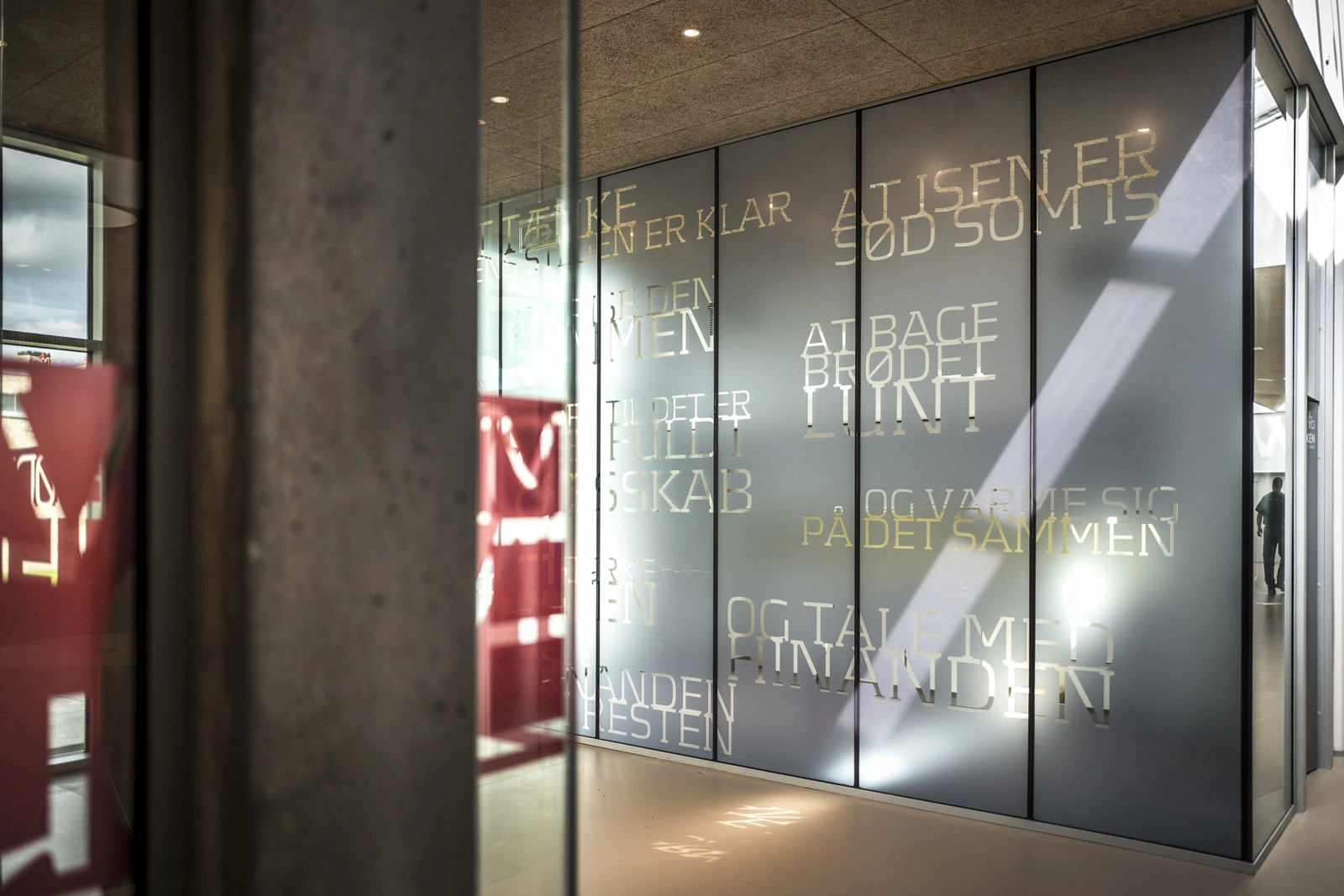 Farver påvirker mennesker, og farvesætningen er derfor omhyggeligt udvalgt til at skabe trygge rammer for patienterne. Billedkunstner Malene Landgreen har sammensat en farvepalet af bløde og dæmpede farver til bygningens vægge, hvor poesi af forfatter Ursula Andkjær Olsen også udsmykker arealerne. Ord og sætninger kredser om de håndgribelige omgivelser, for eksempel lyset, haverne og arkitekturen selv, og de metervis af digte bidrager til at forankre patienterne i de omgivelser, de befinder sig i. På samme tid fungerer udsmykningen af glasvæggene som varierende grader af afskærmning, som er påkrævet i forskellige sammenhænge.