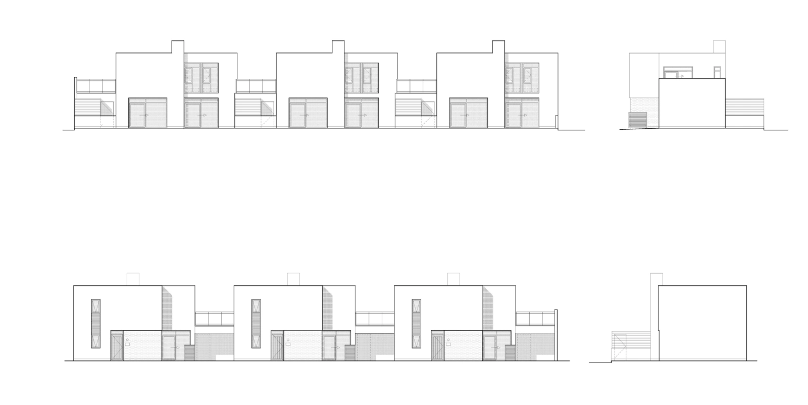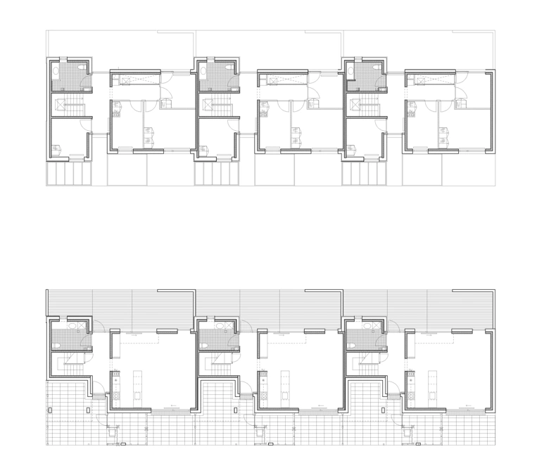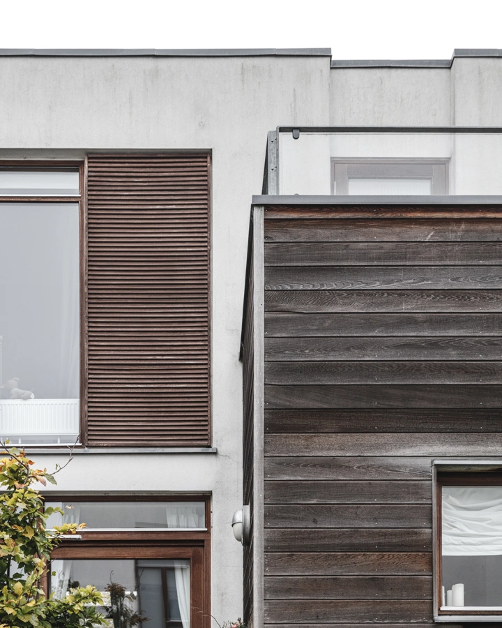 De har små facadespring, en mangfoldighed af rumlige kvaliteter og kontakt til en smuk grøn park. Et kig ned ad den smalle adgangsvej, der breder sig ud i forskellige fordelingsstier, afslører forskellige facadekompositioner med afskærmede gårdhaver.
