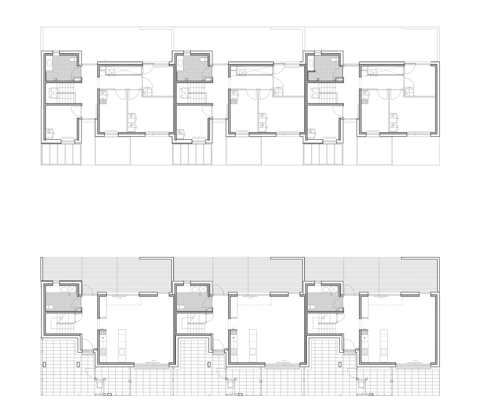 Arkitekturen henvender sig til det grønne fællesrum, og hver bolig flugter med parken visuelt og opbløder grænsen mellem individuelle gårdrum og det offentlige grønne område. De omgivende vægge er lave, hvilket giver mulighed for siddepladser og havekrukker. Køkkener og stuer er placeret i stueetagen og giver størst mulig udnyttelse af terrasser og parkrum.
