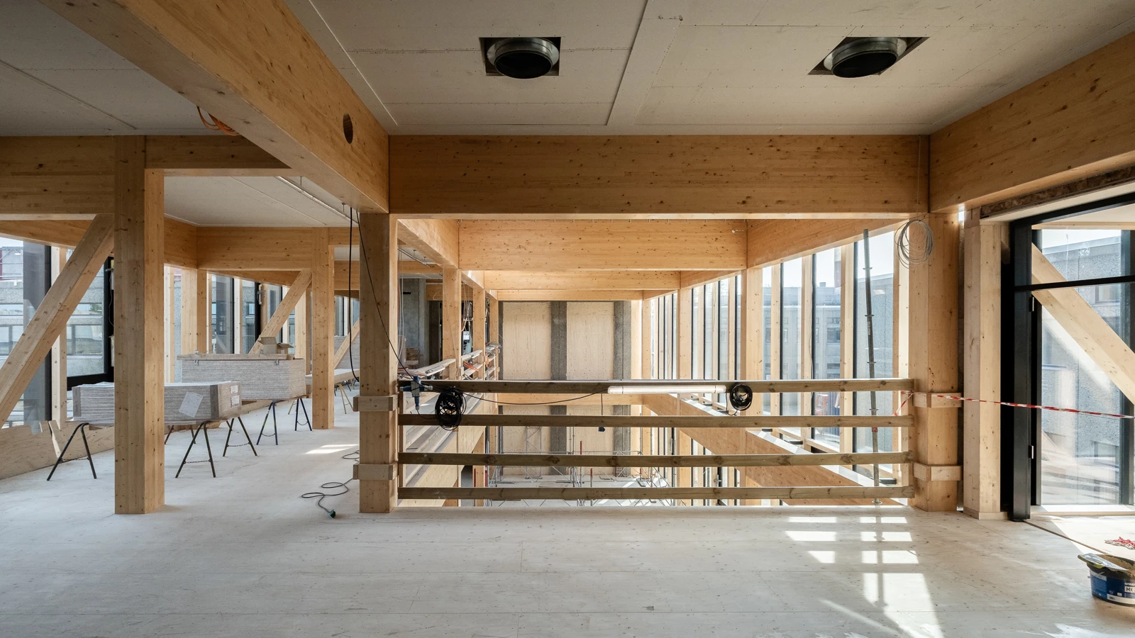 De nye træbygninger skaber både fysisk og visuel sammenhæng. De fungerer som fællesrum, der forbinder etagerne og skaber nye muligheder for undervisning og gruppearbejde. Det omkringliggende landskab rummer zoner til interaktion, læring og rekreation, hvilket gør Pergola-området både moderne og indbydende.