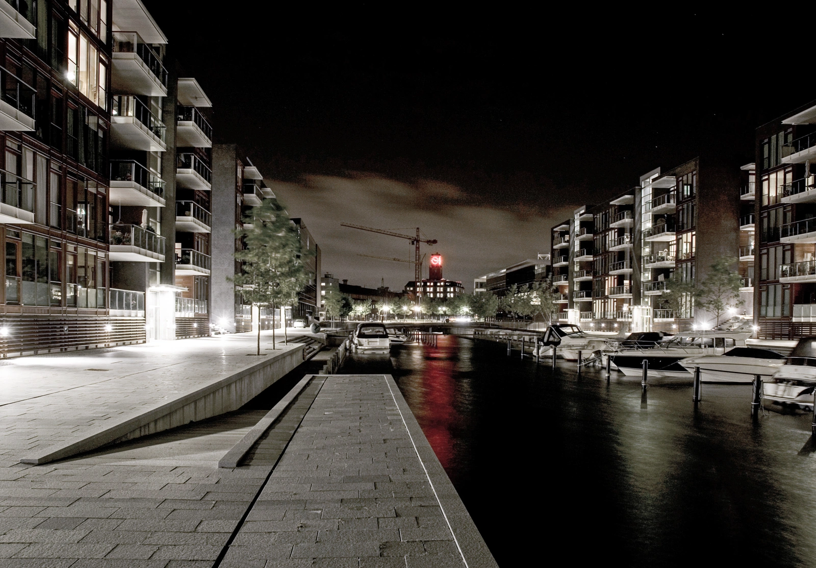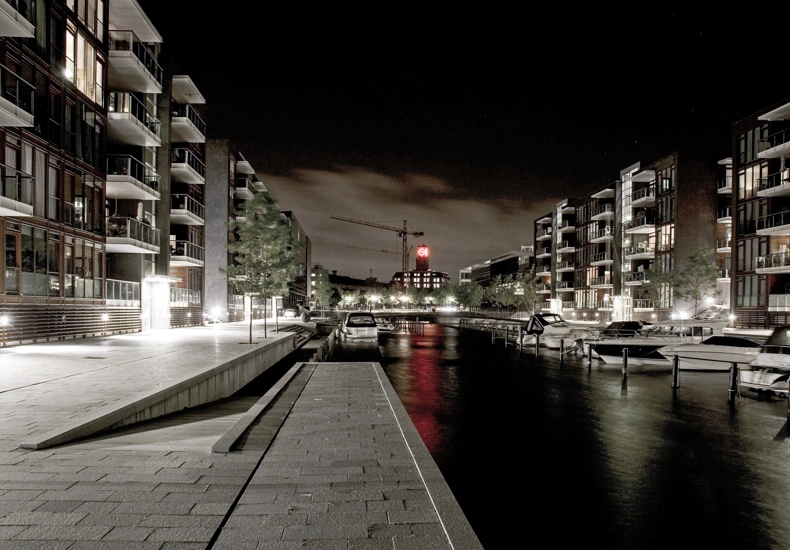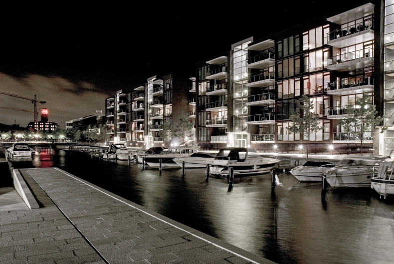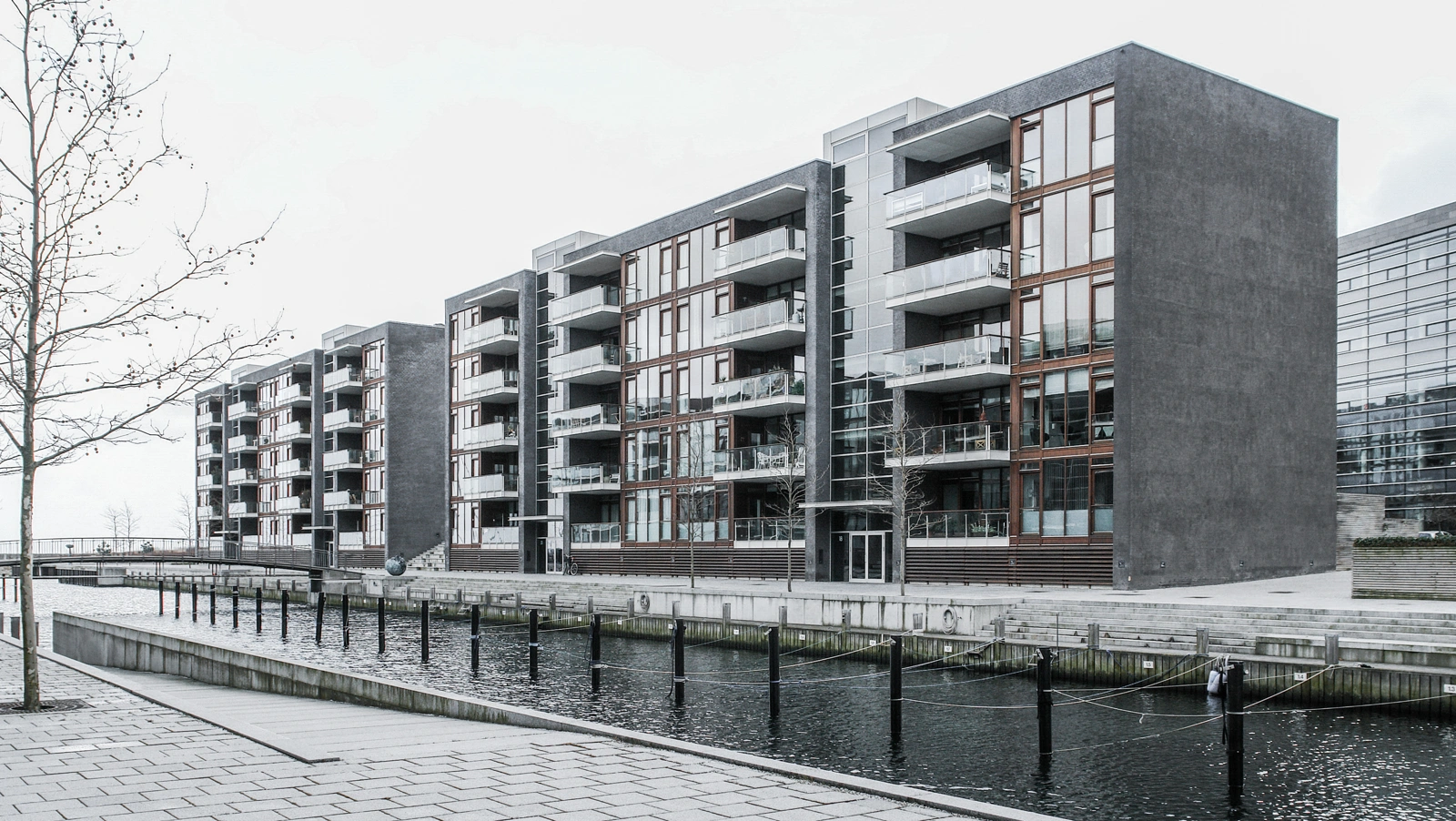 Området ligger smukt ud til Øresund med en kanal som det samlende element, der spejler de i alt fire længebygninger, som bebyggelsen består af.