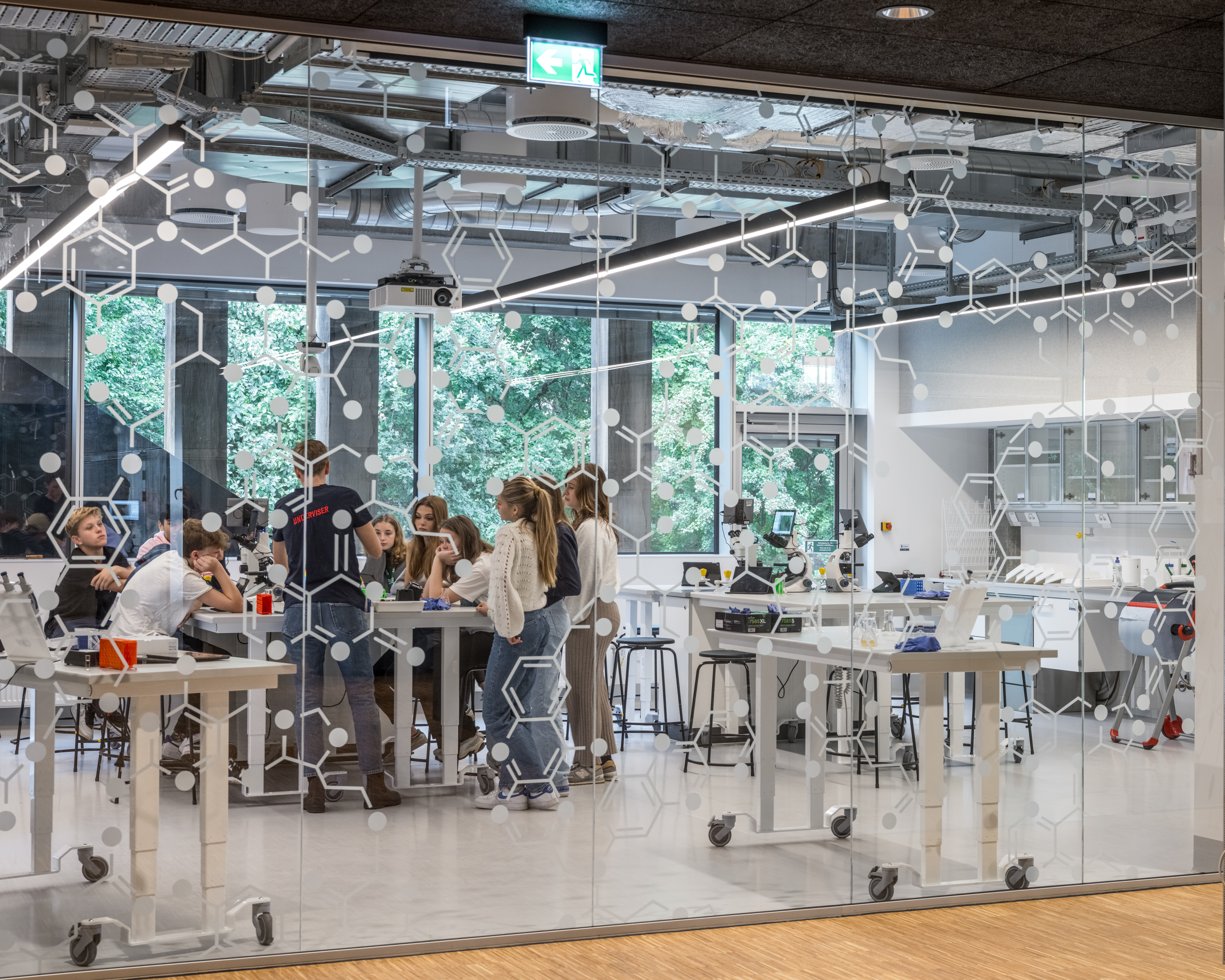 Inside, educational activities centre on three teaching labs and a research lab with additional labs in pipeline. Here, students take on current societal challenges that mirror the research environments of companies and universities, supporting UN’s Sustainable Development Goals. Changing spatial experiences with raw materials, visible piping and technical installations play an active role in learning. At the heart, a 360-degree auditorium, with state-of-the-art AV and sound design, takes children on journeys from earth’s core to the galaxy edge.