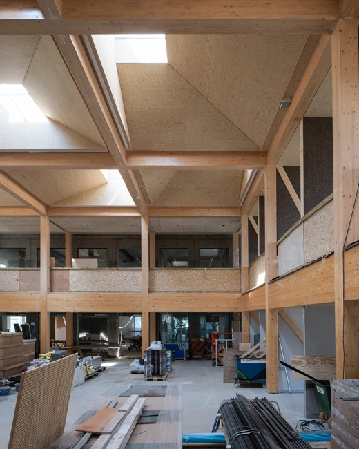 The learning centre is designed with a variety of makerspaces (workshops), fab labs (subject labs) and communication zones (presentation) with varying degrees of transparency and technical/subject-related furniture and equipment so that the individual rooms clearly signal the intended function - here the space actively functions as the “3rd pedagogy”.